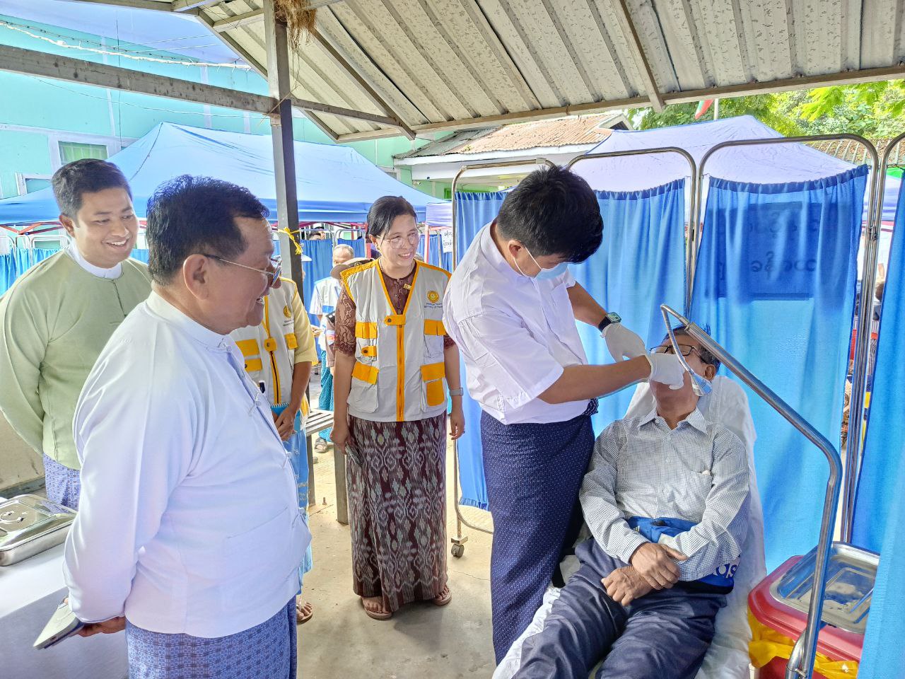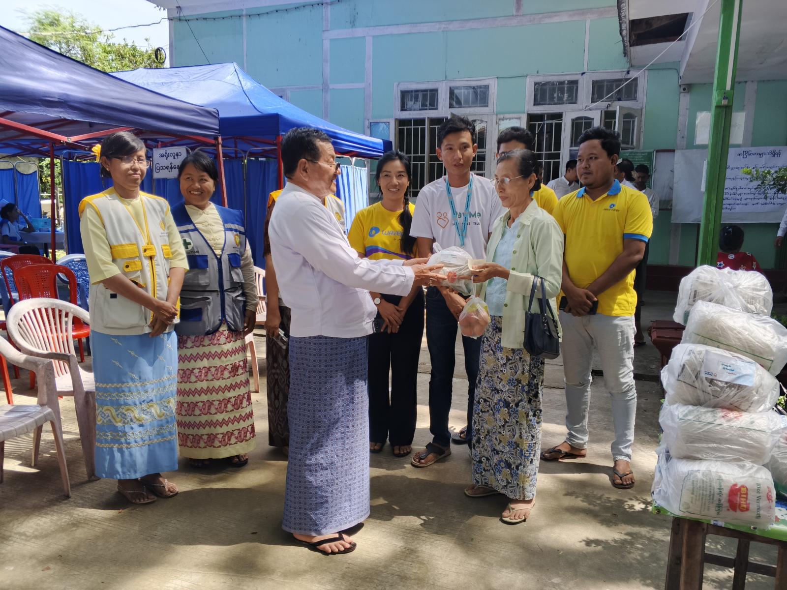 ထို့နောက် နေပြည်တော်ကောင်စီဝင်ဦးမြင့်စိုး၊ နေပြည်တော်ပြည်သူ့ကျန်းမာရေးဦးစီးဌာနမှူး ဒေါက်တာဆွေဇင်ဝင်းနှင့် တာဝန်ရှိသူများက အငြိမ်းစားနိုင်ငံ့ဝန်ထမ်းများအား စားသောက် ဖွယ်ရာများ ပေးအပ်ခဲ့သည်။