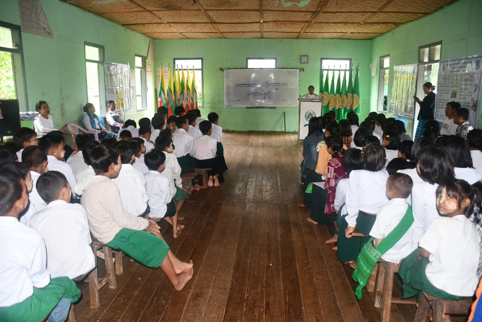 ထို့နောက် အသိပညာပေးဟောပြောပွဲသို့ တက်ရောက်လာကြသော၊ ကျောင်းအုပ်ဆရာမကြီးနှင့် ဆရာ၊ ဆရာမများ၊ ကျောင်းအကျိုးတော်ဆောင်များ၊ ကျောင်းသား၊ ကျောင်းသူ စုစုပေါင်း ဦးရေ(၂၀၀)ကျော်တို့က၊ မြို့နယ်ဘေးအန္တရာယ်ဆိုင်ရာ စီမံခန့်ခွဲရေးဦးစီးဌာနနှင့်၊ ပြန်ကြားရေးနှင့်ပြည်သူ့ဆက်ဆံရေးဦးစီးဌာနမှ ပြသထားသော သဘာဝဘေးအန္တရာယ် ကြိုတင်ကာကွယ်ရေးဆိုင်ရာ အသိပညာပေးနံရံကပ်စာစောင်နှင့် ကလေးအလုပ်သမား ပပျောက်ရေး ဝိုင်းဝန်းကာကွယ်စောင့်ရှောက်ပေး၊ နံရံကပ်စာစောင်များကို စိတ်ပါဝင်စားစွာကြည့်ရှုလေ့လာခဲ့ကြကြောင်း သိရသည်။