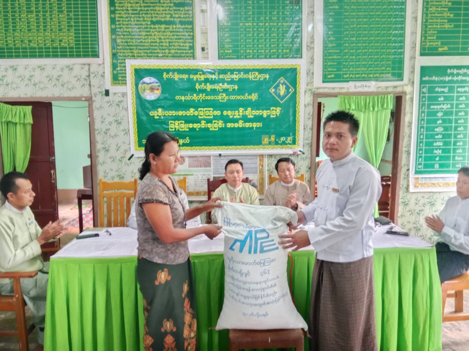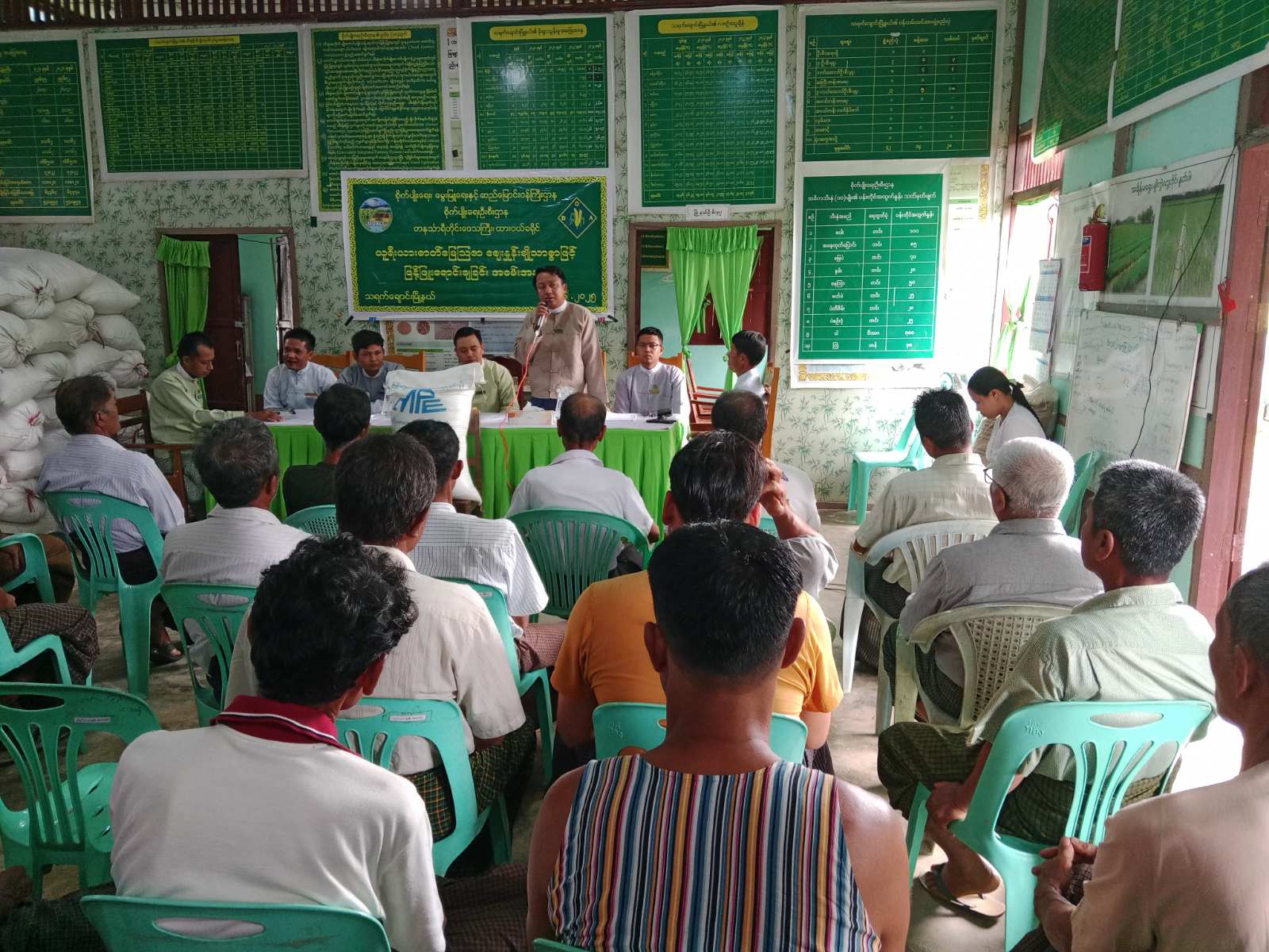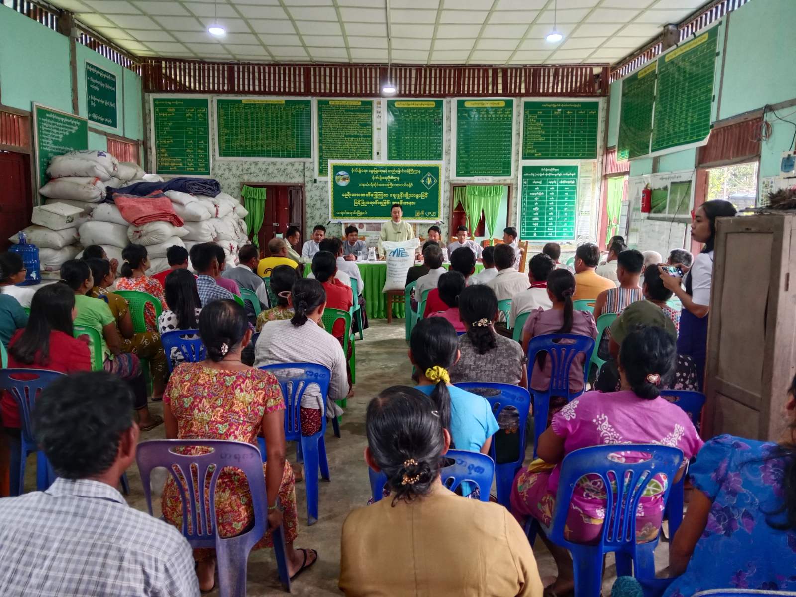 ဆက်လက်၍ သရက်ချောင်းမြို့နယ်၊ စိုက်ပျိုးရေးဦးစီးဌာန မြို့နယ်ဦးစီးမှူး ဦးဇော်မင်းက ၂၀၂၅ ခုနှစ်အတွက် မိုးရာသီ မိုးစပါးပန်းတိုင်စံပြကျေးရွာ၊ မျိုးစေ့ထုတ်စိုက်ခင်း၊ စံပြကွက်၊ စမ်းသပ်ကွက်နှင့် မိုးစပါးစိုက်ပျိုးသည့် တောင်သူများအား ယူရီးယားဓာတ်မြေဩဇာ ဖြန့်ဖြူးပေးအပ်ခြင်း ရည်ရွယ်ချက်အား ရှင်းလင်းပြောကြားသည်။