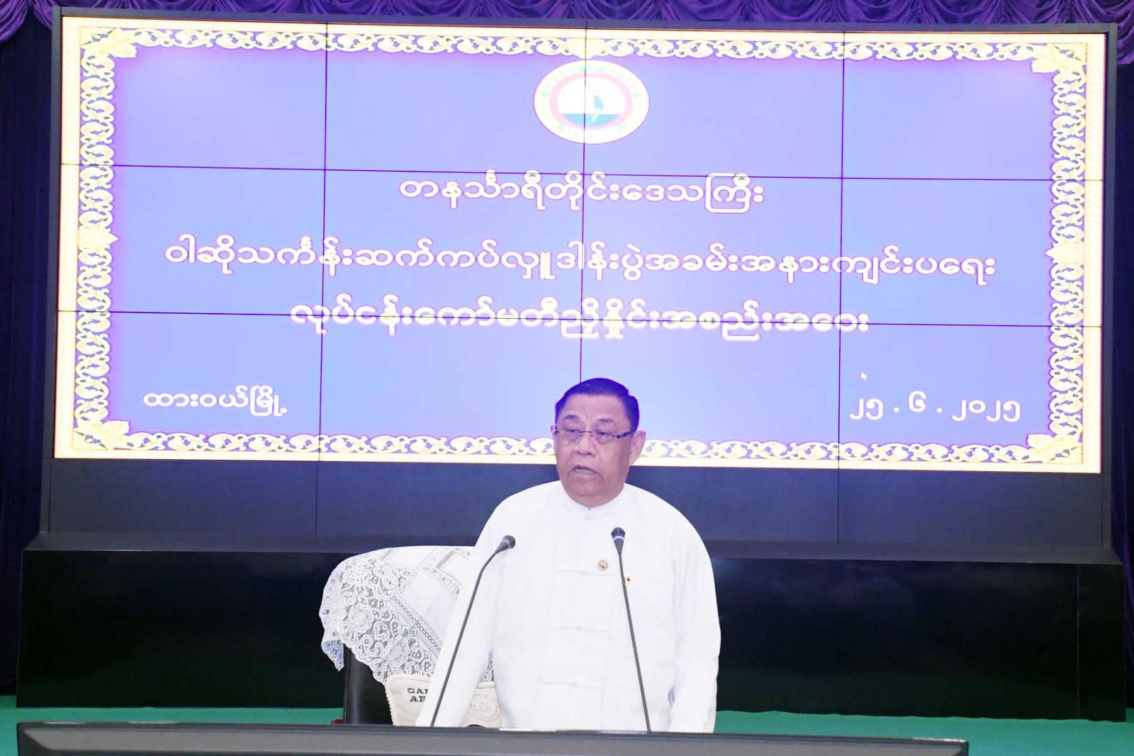 အစည်းအဝေးတွင် တိုင်းဒေသကြီးဝန်ကြီးချုပ် ဦးမြတ်ကိုက ထားဝယ်မြို့၌ရှိသော သံဃာတော်များအား ဝါဆိုသင်္ကန်း ဆက်ကပ်လှူဒါန်းနိင်ရန်အတွက် ကြိုတင်ညှိနှိုင်းအစည်းအဝေးဖြစ်ကြောင်း၊ ဝါဆိုသင်္ကန်း ဆက်ကပ်လှူဒါန်းပွဲအခမ်းနားကို နှစ်စဉ်နှစ်တိုင်း ပြုလုပ်ကျင်းပလျက်ရှိကြောင်း၊ ဧည့်ခံကျွေးမွေးမည့်အစီအစဉ်များ၊ ပြုလုပ်ကျင်းပမည့်ရက်၊ အချိန်အဓိကကျကြောင်း၊ ဝါဆို သင်္ကန်းဆက်ကပ်လှူဒါန်းပွဲအခမ်းအနား စနစ်တကျကျင်းပနိုင်ရေးအတွက် တက်ရောက်လာသူများအနေဖြင့် လစ်ဟမှုမရှိစေရေး ကြိုတင်ပြင်ဆင်စီစဉ်ဆောင်ရွက်ထားရှိရန် လိုအပ်ကြောင်းပြောကြားသည်။