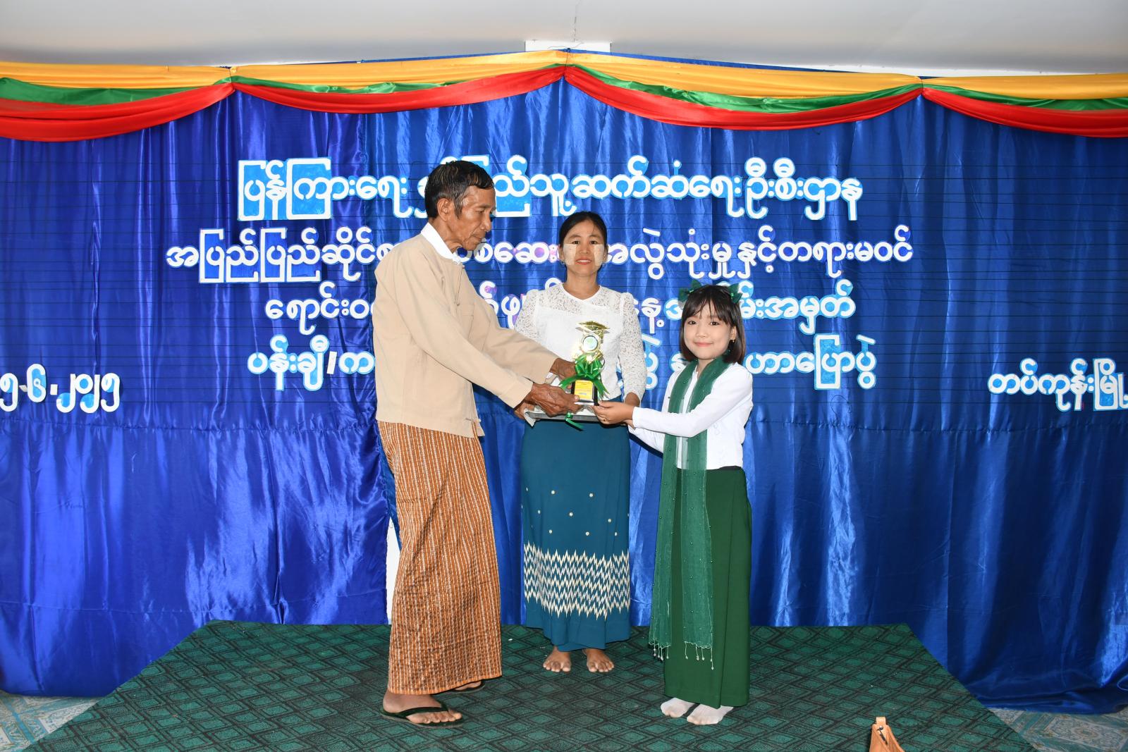 ထို့နောက်ပြိုင်ပွဲတွင် ဆုချီးမြှင့်ပွဲအခမ်းအနား ဆက်လက်ကျင်းပရာ ဦးစီအရာရှိ ဒေါ်တင့်တင့်ခိုင် က ပြိုင်ပွဲ၊ ပြပွဲများ ကျင်းပပြုလုပ်ရခြင်း၏ ရည်ရွယ်ချက်များ ရှင်းလင်းပြောကြားပြီး၊ မြို့နယ်စာအုပ်စာစောင်ချစ်မြတ်နိုးသူများအသင်း(Book Club)အဖွဲ့ဥက္ကဋ္ဌ ဦးထွန်းကြည် (မောင်ကြည်မူ-ပျဉ်းမနား)၊ စာရေးဆရာမ ဌေးဌေးမြင့် (ခင်လေးပြည်ထောင်စု)တို့က အပြည်ပြည်ဆိုင်ရာ မူးယစ်ဆေးဝါးအလွဲသုံးမှုနှင့် တရားမဝင်ရောင်းဝယ်မှုတိုက်ဖျက်ရေးနေ့ အထိမ်းအမှတ် အသိပညာပေးဟောပြောခဲ့ပြီးနောက် ဆုရရှိသူများ၊ ပြိုင်ပွဲဝင်သူများအား ဆုတံဆိပ်နှင့် ဆုလက်ဆောင်များ အသီးသီးပေးအပ်ချီးမြှင့်ခဲ့သည်။