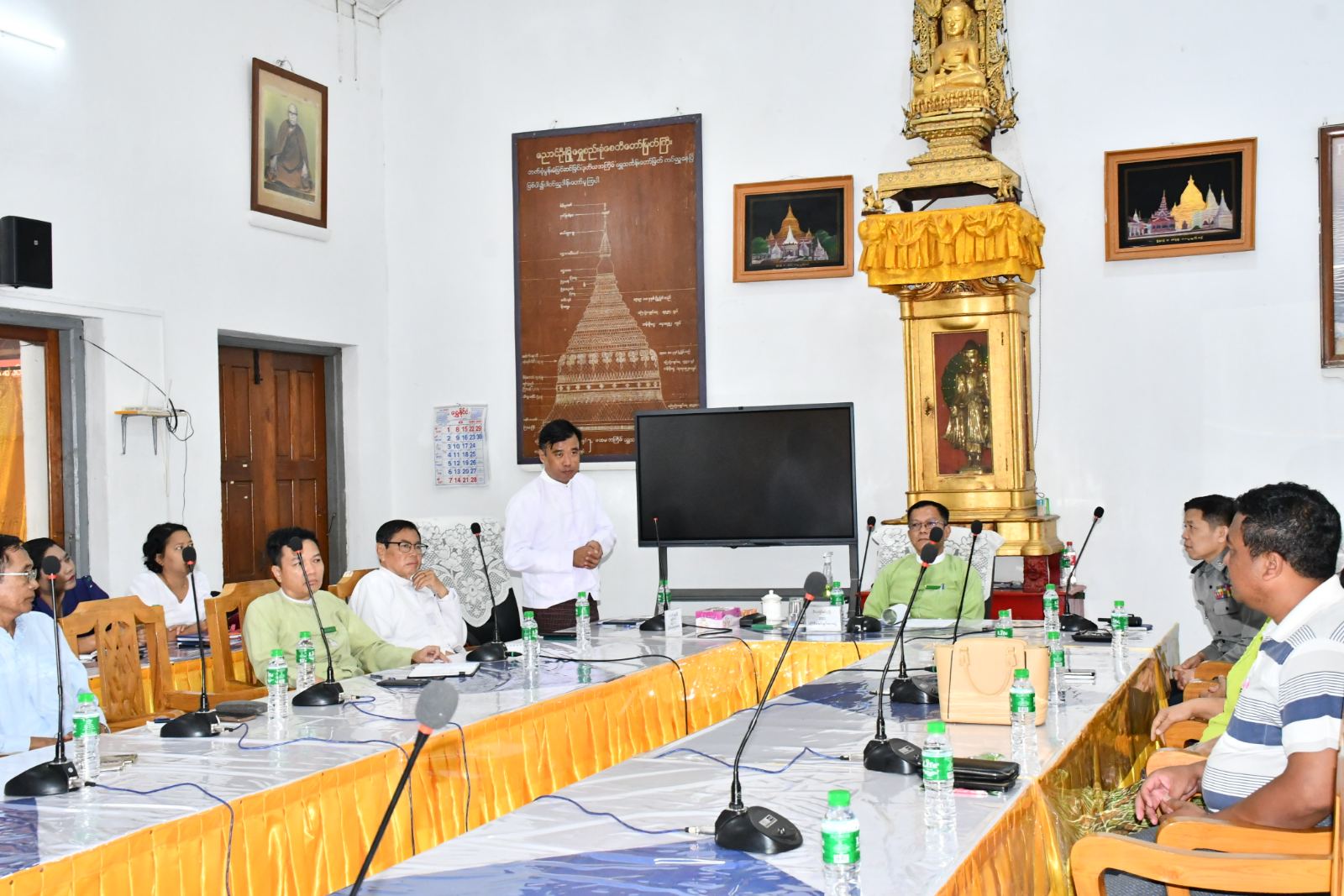 မန္တလေးတိုင်းဒေသကြီး ညောင်ဦးမြို့ ရွှေစည်းခုံစေတီတော်မြတ်ကြီးလုံးတော်ပြည့် ရွှေသင်္ကန်းကပ်လှူလျက်ရှိရာ စတုတ္ထပိုင်းလုပ်ငန်းစဉ်ပါ လိုအပ်သောမျက်ပါးရွှေဆိုင်း ၂၄၀၀ ဝယ်ယူနိုင်ရေးလုပ်ငန်းညှိနှိုင်းအစည်းအဝေးကို ဇွန် ၂၅ ရက် နံနက် ၉ နာရီ ခွဲက ရွှေစည်းခုံဘုရားဂေါပကရုံးခန်းတွင် ကျင်းပသည်။