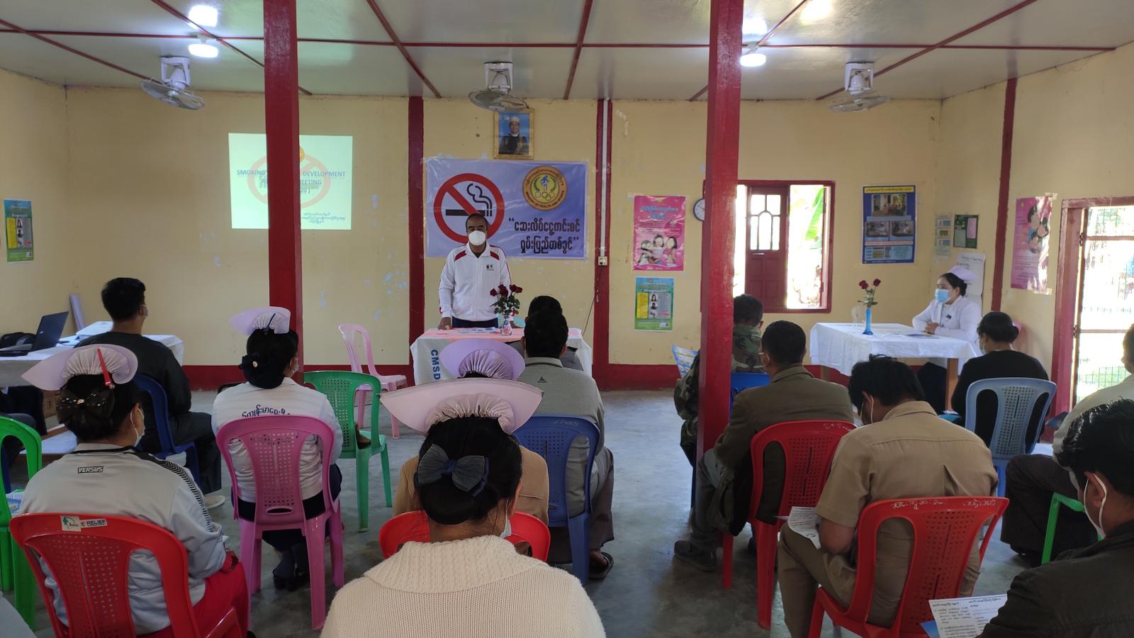 အဆိုပါ ဆေးလိပ်ငွေ့ကင်းစင်ရေး အသိပညာပေးဆွေးနွေးပွဲတွင် ပြည်သူ့လွှတ်တော်ကိုယ်စားလှယ် ဦးစိုင်းဥက္ကာ၊ မြို့နယ်စီမံခန့်ခွဲမှု ကော်မတီဥက္ကဋ္ဌ ဦးသန်းနိုင်တို့မှ အသီးသီးအမှာစကား ပြောကြားခဲ့ပြီး မြို့နယ်ပြည်သူ့ဆေးရုံ အုပ်ကြီး ဒေါက်တာဇင်မောင်နွယ်မှ ဆေးလိပ်ငွေ့ ကင်းစင်ရေး အသိပညာပေးဆွေးနွေးပွဲ ကျင်းပရခြင်း ရည်ရွယ်ချက်ကို ရှင်းလင်း ပြောကြားခဲ့ပြီး ဆေးလိပ်နှင့်ဆေးရွက်ကြီး အန္တရာယ်၊ ဆေးလိပ်နှင့် ဆေးရွက် ကြီးကြောင့် ဖြစ်သော ရောဂါများ၊ ဆေးလိပ်နှင့်ကွမ်းယာ စားသုံးခြင်းမပြုရန်၊ သတိပြုလိုက်နာ ဆောင်ရွက်ရန် စသည့် “ဆေးလိပ်၊ ကွမ်းယာ ကင်းစင်မှ လူမှုဘဝ မြင့်မားရ” ဆိုသည့် ဆေးလိပ်၊ ဆေးရွက်ကြီးကြောင့် ဖြစ်ပေါ်နိုင်သော အန္တရာယ်များကို အသိ ပညာပေး ဆွေးနွေး ပြောကြားခဲ့သည်။