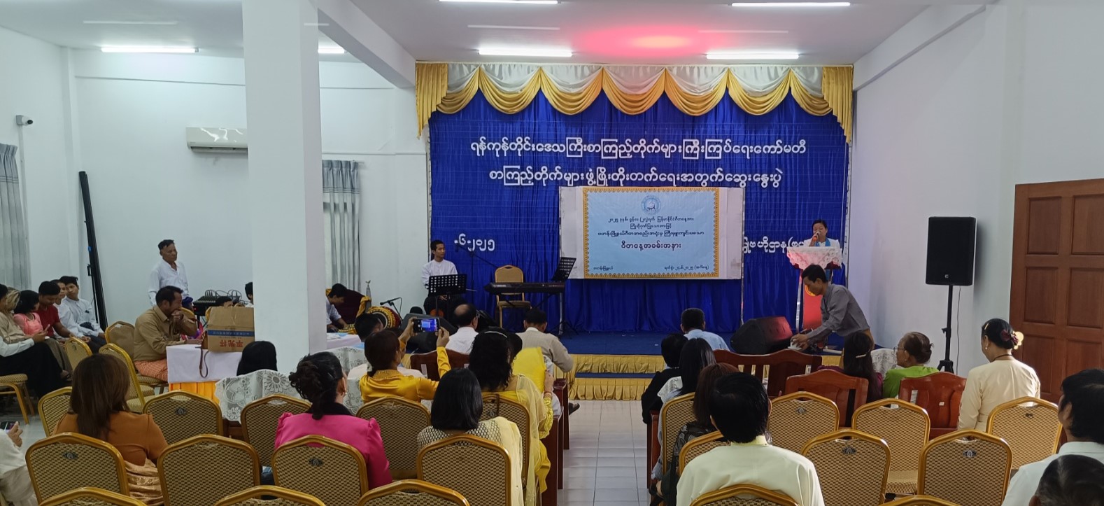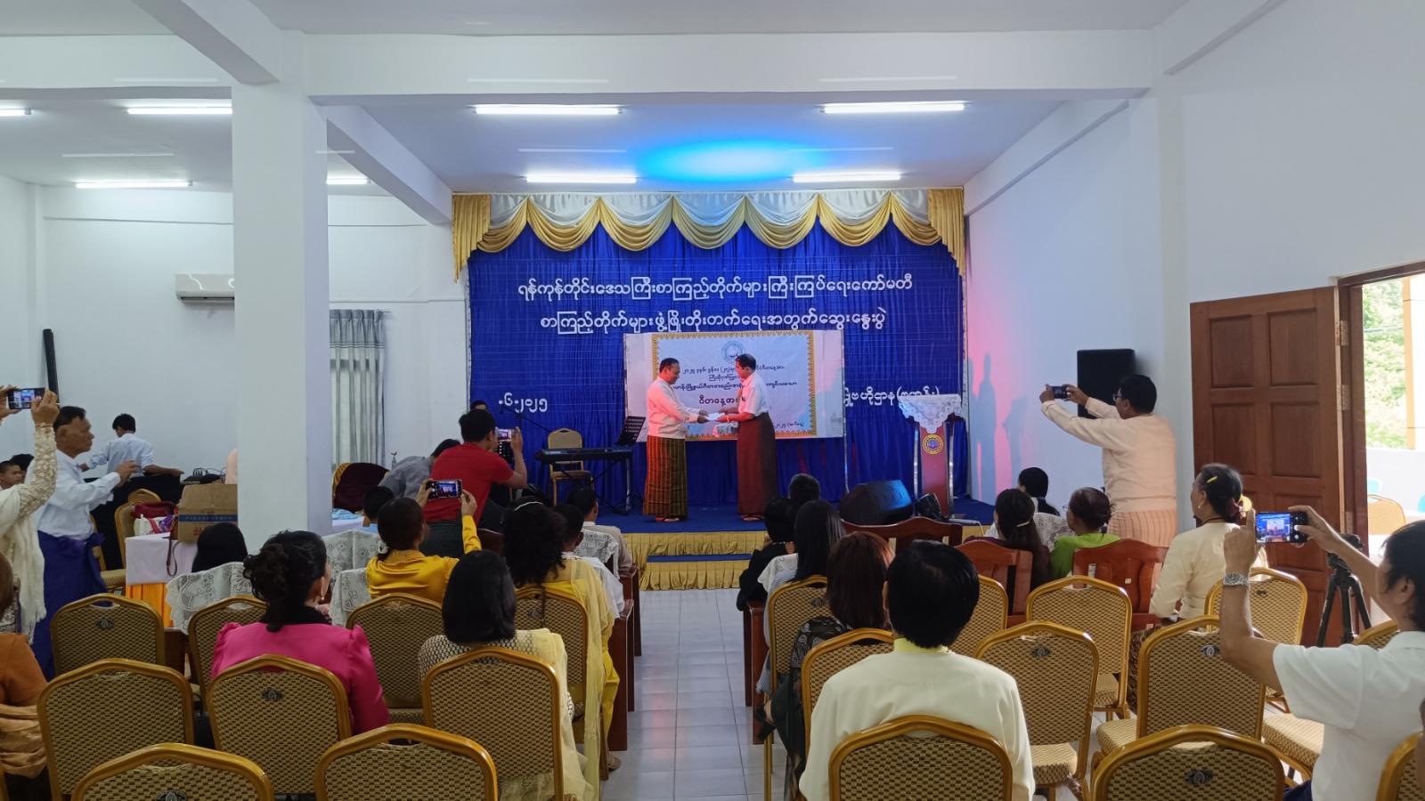 ရန်ကုန်တိုင်းဒေသကြီး၊ ကမာရွတ်ခရိုင်၊ ဗဟန်းမြို့နယ်တွင် မြန်မာနိုင်ငံဂီတအစည်းအရုံး(ဗဟို)၏ မြို့နယ်ဂီတအစည်းအရုံး အလုပ်အမှုဆောင်များ ခန့်အပ်လွှာပေးအပ်ပွဲနှင့် ဂီတနေ့အထိမ်းအမှတ်အခမ်းအနားကို ယမန်နေ့နံနက် ၁၀ နာရီအချိန်က ဗဟန်းလူထုအခြေပြုဗဟိုဌာန၌ ကျင်းပပြုလုပ်ခဲ့ရာ မြန်မာနိုင်ငံဂီတအစည်းအရုံး(ဗဟို)မှ တာဝန်ရှိသူများ၊ မြို့နယ်ဂီတအစည်းအရုံး အလုပ်အမှုဆောင်များနှင့် အခြားဖိတ်ကြားထားသူများ တက်ရောက်ကြသည်။