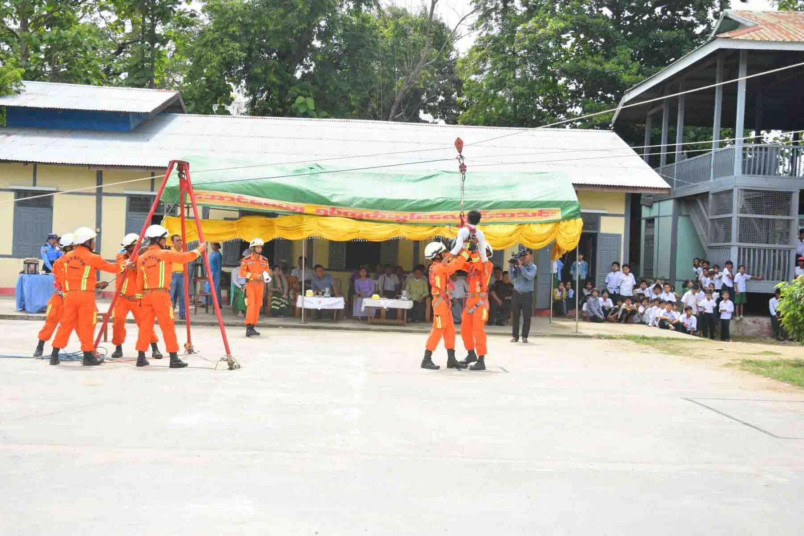 ပြည်ထောင်စုနယ်မြေ၊ နေပြည်တော် တပ်ကုန်းမြို့နယ် မီးသတ်ဦးစီးဌာနမှ ဦးစီးအရာရှိ ဦးဟိန်းအောင်ကျော် ကြီးကြပ်၍ သဘာဝဘေးအန္တရာယ်တုံ့ပြန်ဆောင်ရွက်နိုင်ရေး အသိပညာပေးဟောပြောပွဲနှင့် သဏ္ဍာန်တူဇာတ်တိုက် လေ့ကျင်မှုဆောင်ရွက်ခြင်းကို ယနေ့နံနက် ၉ နာရီခွဲက အောင်ဇေယျရပ်ကွက်၊ အမှတ်(၁)အခြေခံပညာအထက်တန်းကျောင်းတွင် ဆောင်ရွက်ခဲ့ကြောင်း သိရသည်။