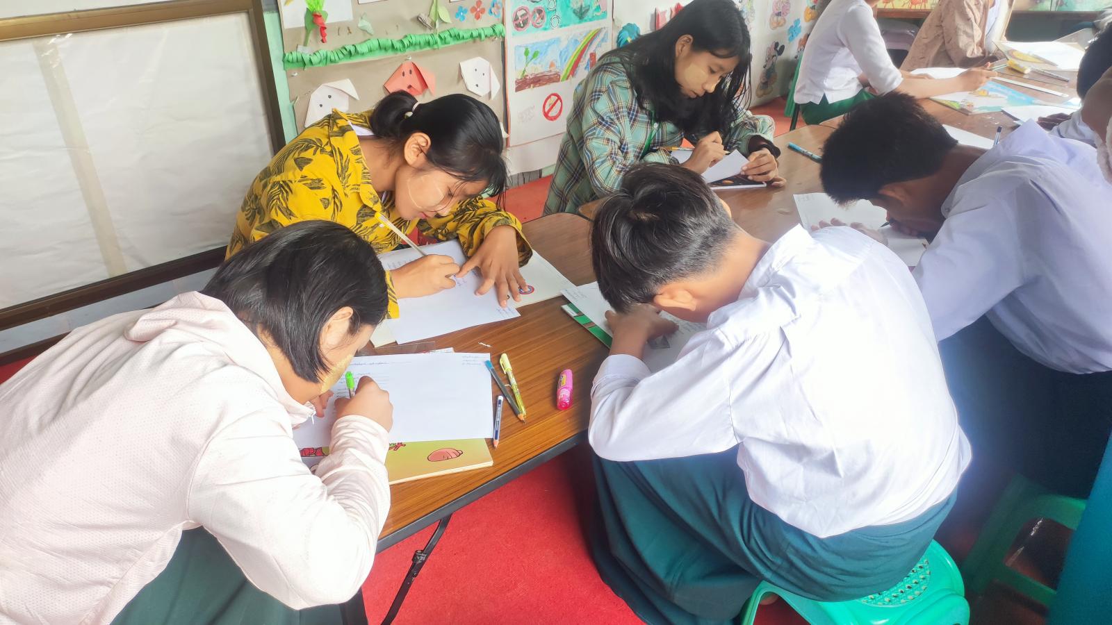 ထို့နောက် ကျောင်းသား၊ ကျောင်းသူလေးများက ခင်းကျင်းပြသထားသည့် သုတ/ရသ စာအုပ်များ၊ အသိပညာပေး နံရံကပ်စာစောင်များကို စိတ်ဝင်တစားကြည့်ရှုခဲ့ကြောင်း သိရှိရသည်။