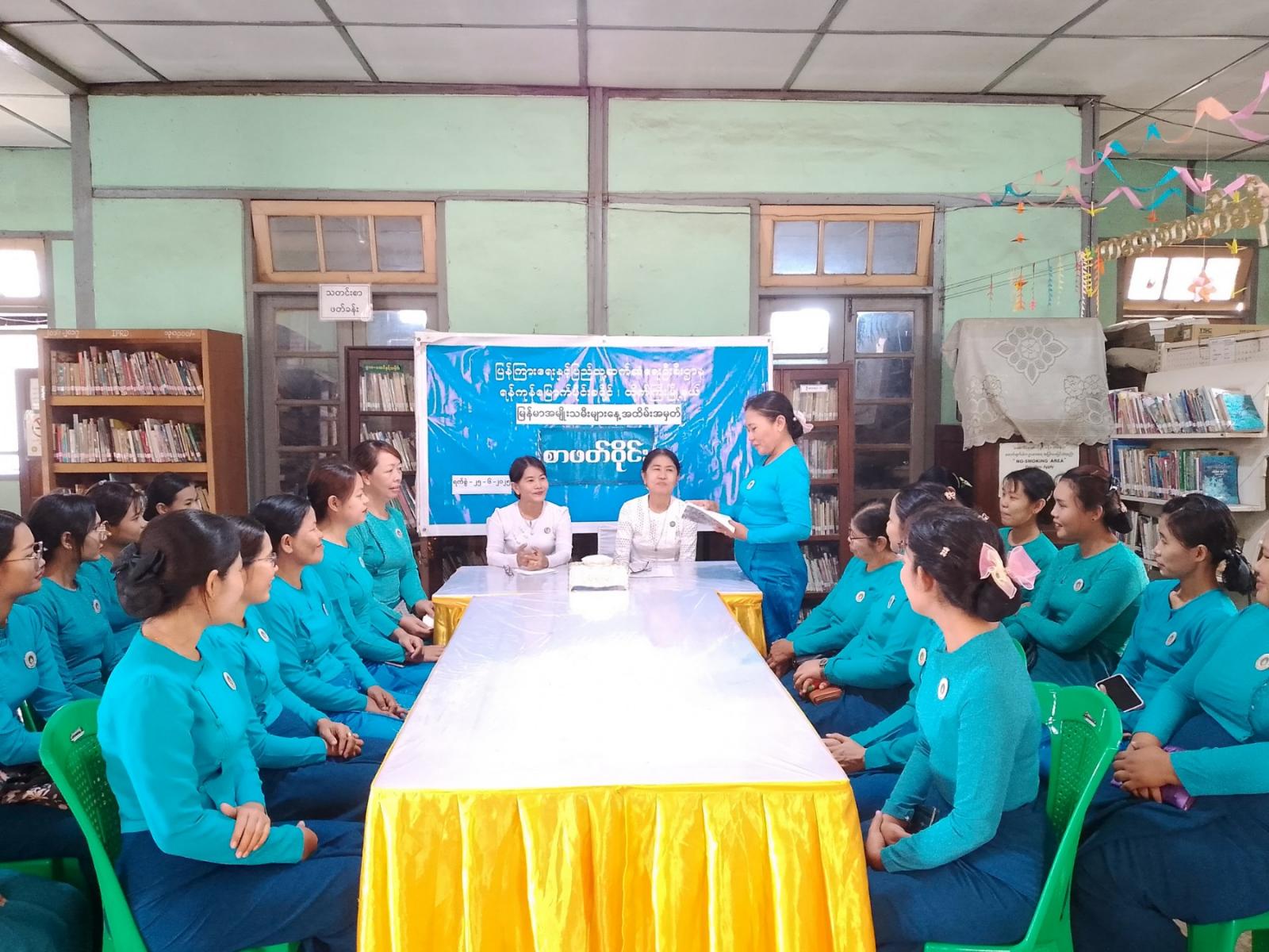 စာဖတ်ဝိုင်းဆွေးနွေးပွဲတွင် လူမှုဝန်ထမ်းဦးစီးဌာန၊ မြောက်ပိုင်းခရိုင် လူမှုဝန်ထမ်းရုံးမှ ဒုတိယညွှန်ကြားရေးမှူး ဒေါ်နီနီဝင်းက မြန်မာအမျိုးသမီးများနေ့ ဖြစ်ပေါ်လာပုံအကြောင်းကို ရှင်းလင်းပြောကြားပြီး ပြန်ကြားရေးနှင့်ပြည်သူ့ဆက်ဆံရေးဦးစီးဌာန ဦးစီးအရာရှိ ဒေါ်စောဝတ်ရည်က စာရေးဆရာတက္ကသိုလ်ဘုန်းနိုင်ရေးသားသည့် တပြည်သူမရွှေထားစာအုပ်ကို ဆွေးနွေးရာ ဒုတိယကမ္ဘာစစ်ကာလ မြန်မာပြည်နိုင်ငံရေးအခြေအနေကို နောက်ခံထားရေးဖွဲ့ထားပုံ၊ စာရေးသူက ဇာတ်ကောင်စရိုက်ကို သရုပ်ဖော်ရာ၌ ဆွေမျိုးမရှိသော်လည်း ၎င်းတွင်ရှိသော မာနနှင့် ကိုယ့်ဒူးကိုယ်ချွန်ကြိုးစားခဲ့ပုံ၊ လူ့ဘဝကိုလျှောက်လှမ်းရာတွင် လုပ်သင့်သည့်အလုပ်ကို ကြိုးစားလုပ်ဆောင်ရင်း ရည်မှန်းရာပန်းတိုင်ကို ရရှိခဲ့ပုံတို့ကို ဆွေးနွေးခဲ့ရာ Women Club အဖွဲ့ဝင် မြို့နယ်အမျိုးသမီးရေးရာအဖွဲ့မှ ဒေါ်နီနီဝင်းနှင့် ဒေါ်နန်းခင်မာရွှေတို့က ပြန်လည်ဆွေးနွေးသည်။