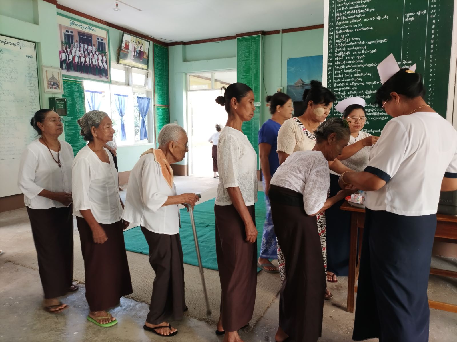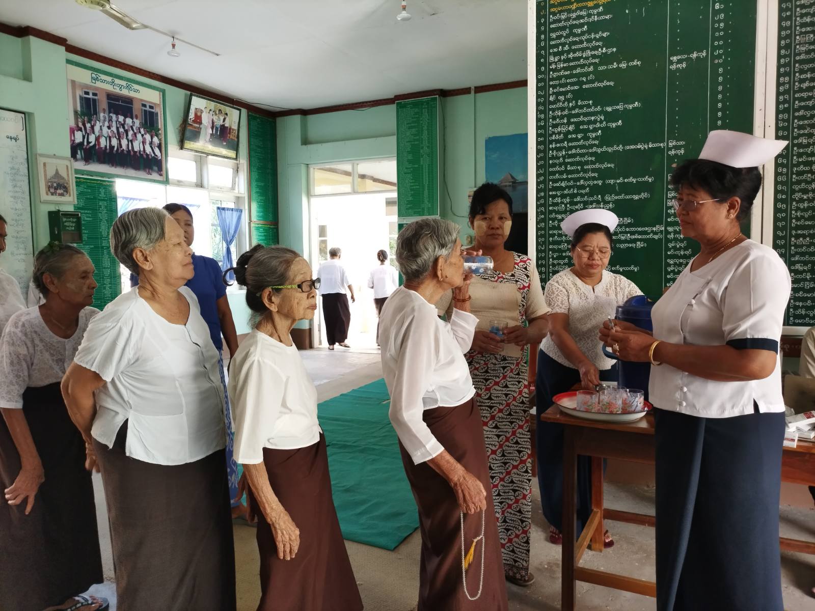 ထို့နောက် ကာကွယ်ဆေးတိုက်ကျွေးနေမှုကို မြို့နယ်စီမံအုပ်ချုပ်ရေးအဖွဲ့ဥက္ကဋ္ဌ မြို့နယ်အုပ်ချုပ်ရေးမှူး ဦးမင်းအောင်နှင့်တာဝန်ရှိသူများ၊ ပြည်သူ့ကျန်းမာရေး ဦးစီးဌာန၊ မြို့နယ်ကျန်းမာရေးဦးစီးဌာနမှူး ဒေါက်တာဘုန်းမြတ်ကိုနှင့် ဌာနဆိုင်ရာတာဝန်ရှိသူများကလိုက်လံ ကြည့်ရှုအားပေးခဲ့ပြီး လိုအပ်သည်များကို လမ်းညွှန်မှာကြားခဲ့ကြောင်း သိရသည်။ ဆက်လက်၍ ကျန်းမာရေးဝန်ထမ်းများက မြစ်သားဘိုးဘွားရိပ်သာမှ အဘိုး၊ အဘွား (၃၅) ဦးကို တတိယအကြိမ် ပြင်းထန်ဝမ်းပျက်ဝမ်းလျှောရောဂါ (OCV) ကာကွယ်ဆေးတိုက်ကျွေးပေးခဲ့ကြောင်း မြို့နယ်မိခင်နှင့်ကလေးကျန်းမာရေးဌာန တာဝန်ရှိသူတစ်ဦးထံမှ သိရသည်။