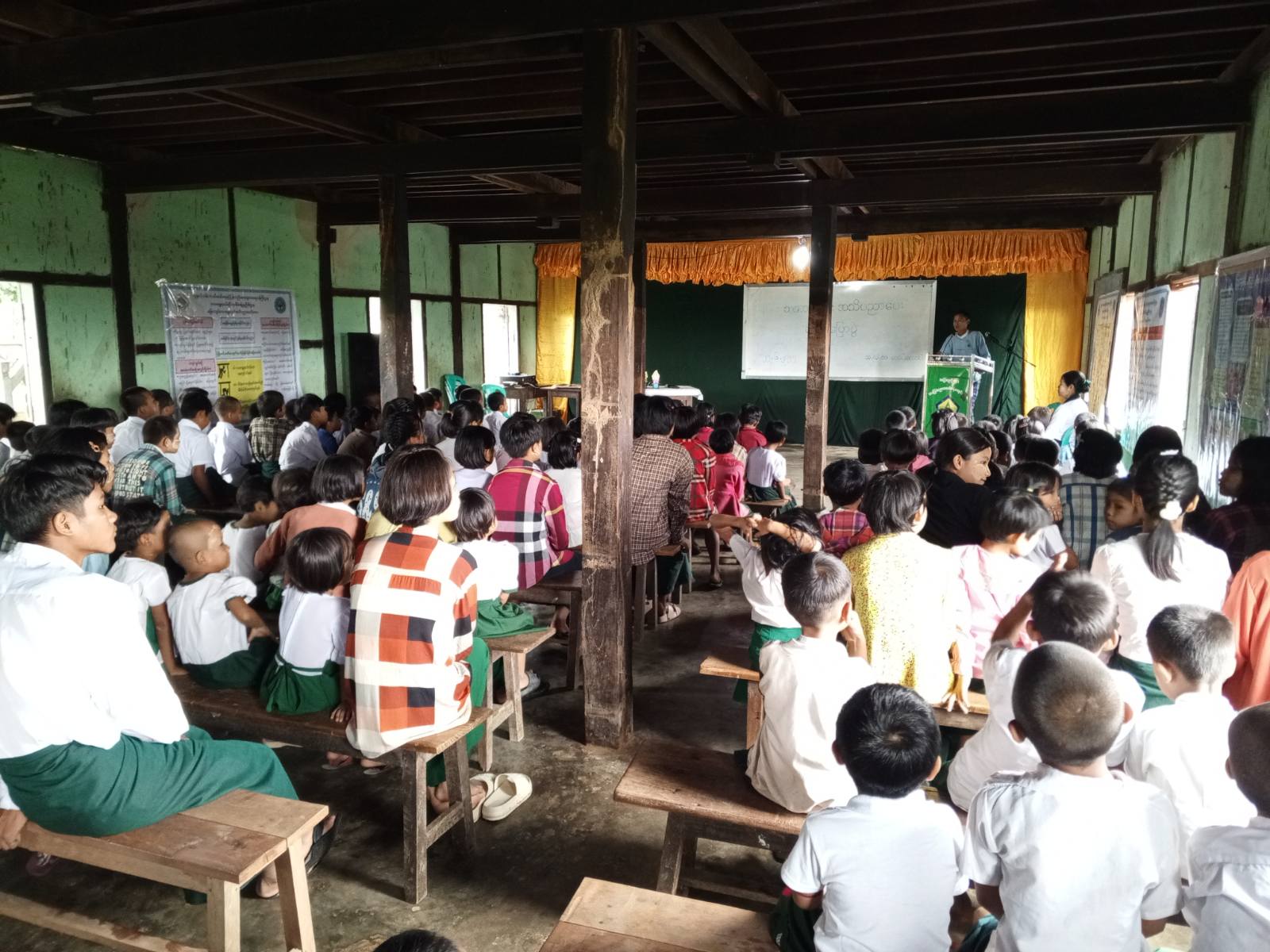ထို့နောက်အသိပညာပေးဟောပြောပွဲသို့ တက်ရောက်လာကြသော ကျောင်းအုပ်ဆရာမကြီးနှင့် ဆရာ၊ ဆရာမများ၊ ကျောင်းအကျိုးတော်ဆောင်များ၊ ကျောင်းသား၊ ကျောင်းသူ စုစုပေါင်း ဦးရေ (၂၀၀) ကျော်တို့က မြို့နယ်ဘေးအန္တရာယ်ဆိုင်ရာ စီမံခန့်ခွဲရေးဦးစီးဌာနနှင့် ပြန်ကြားရေးနှင့်ပြည်သူ့ဆက်ဆံရေးဦးစီးဌာနမှပြသထားသော သဘာဝဘေးအန္တရာယ် ကြိုတင်ကာကွယ်ရေးဆိုင်ရာ အသိပညာပေး နံရံကပ်စာစောင်နှင့် ကလေးအလုပ်သမားပပျောက်ရေး ဝိုင်းဝန်းကာကွယ်စောင့်ရှောက်ပေး နံရံကပ်စာစောင်များကို စိတ်ပါဝင်စားစွာ ကြည့်ရှုလေ့လာခဲ့ကြကြောင်း သိရသည်။