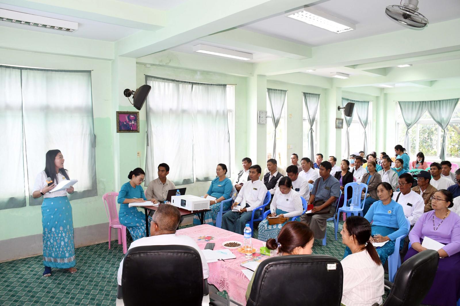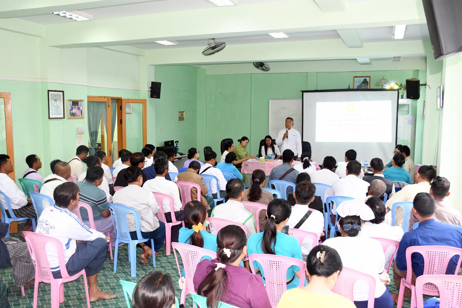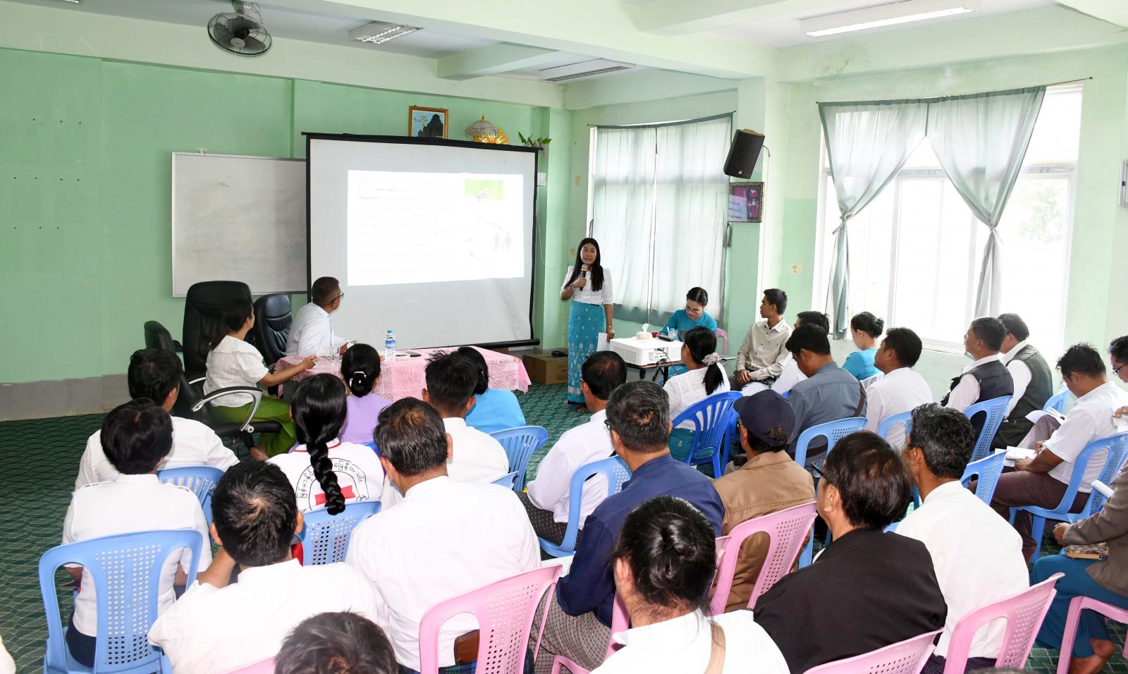 ရှေးဦးစွာ ခရိုင်ပြည်သူ့ကျန်းမာရေးဦးစီးဌာနမှူး ဒေါက်တာငြိမ်းချမ်းမှ အဖွင့်အမှာစကားပြောကြားပြီး မြို့နယ်ပြည်သူ့ကျန်းမာရေးဦးစီးဌာနမှူး ဒေါက်တာ အိအိဖြိုးအောင်မှ သွေးလွန်တုပ်ကွေးရောဂါကာကွယ်နှိမ်နင်းရေးလုပ်ငန်းဆောင်ရွက်ချက်များနှင့်ပတ်သတ်၍ Power Point ဖြင့် အသေးစိတ် ရှင်းလင်းပြောကြားခဲ့သည်။