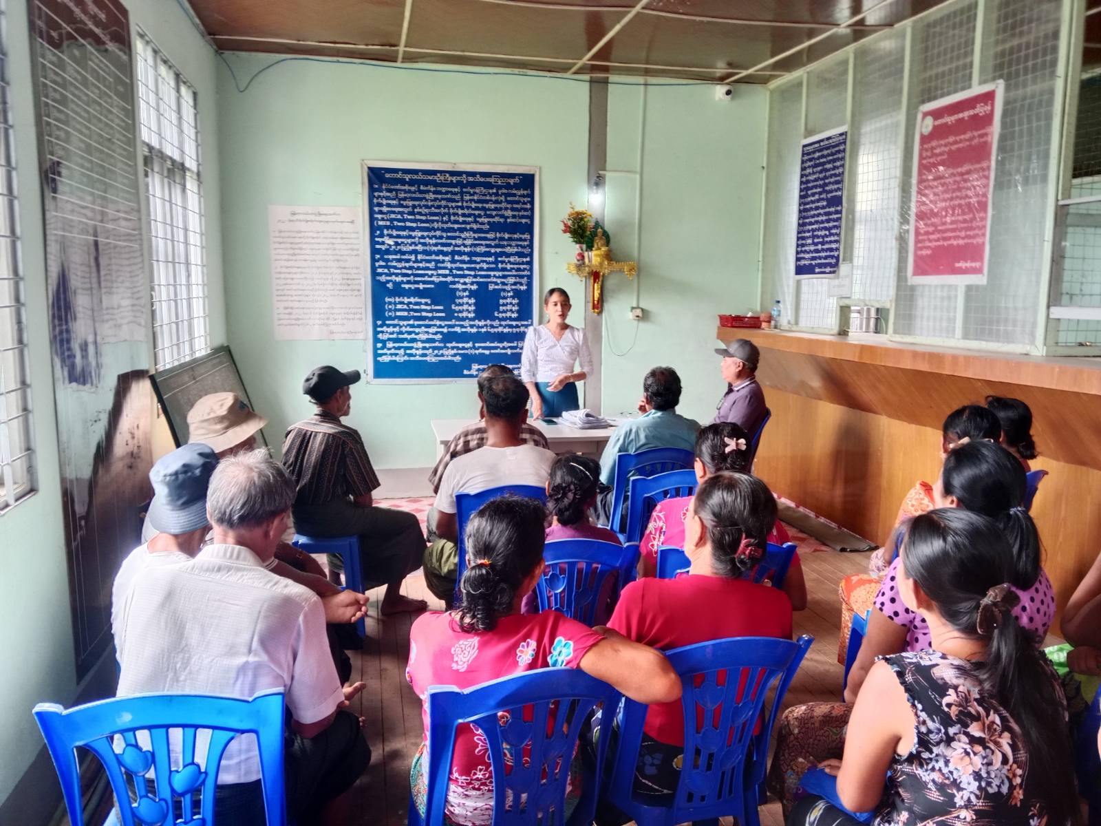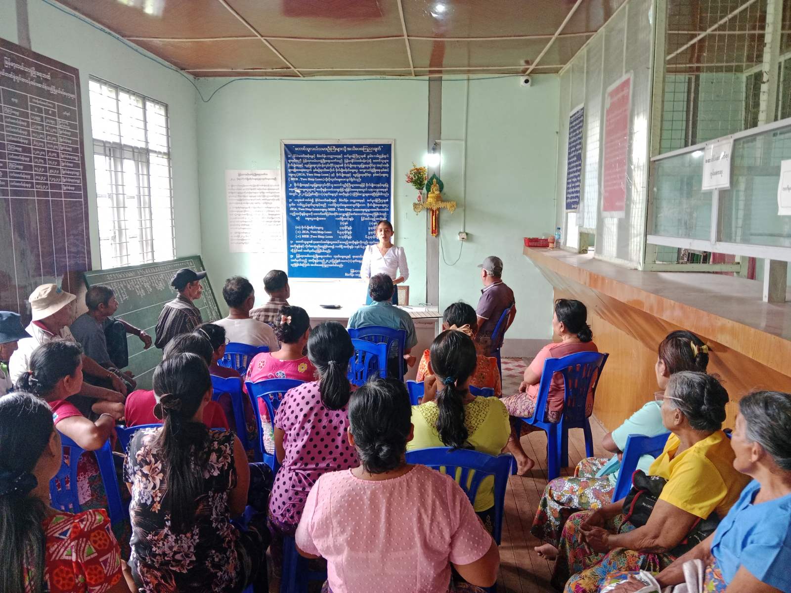 ရှေးဦးစွာ သရက်ချောင်းမြို့နယ်၊ မြန်မာ့လယ်ယာဖွံ့ဖြိုးရေးဘဏ်တာဝန်ခံ ဒေါ်ကျော့ကျော့မိုးနှင့် ရပ်ကွက်/ကျေးရွာအုပ်ချုပ်ရေးမှူးများက တောင်သူများအား ငွေထုတ်ချေးရာတွင် လိုအပ်သည့်အချက်အလက်များနှင့် စည်းမျဉ်း၊ စည်းကမ်းများရှင်းလင်းပြောကြားခဲ့သည်။