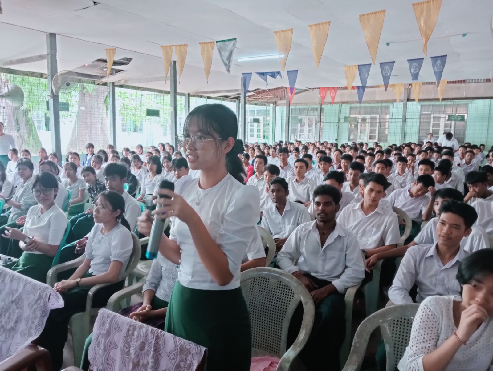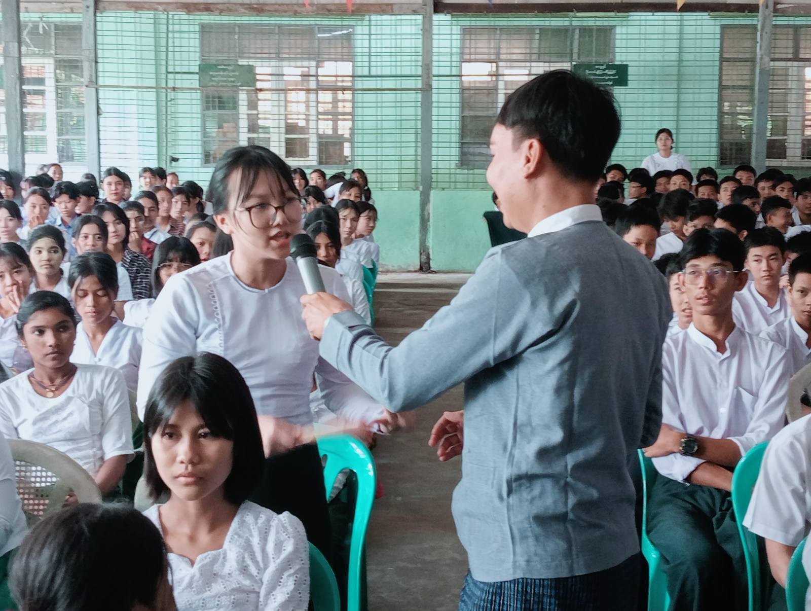 ရှေးဦးစွာ လူမှုဝန်ထမ်း၊ ကယ်ဆယ်ရေးနှင့်ပြန်လည်နေရာချထားရေးဝန်ကြီးဌာန၊ ဘေးအန္တရာယ်ဆိုင်ရာစီမံခန့်ခွဲမှုဦးစီးဌာနမှ သန်လျင်ခရိုင်၊ လက်ထောက်ညွှန်ကြားရေးမှူး ဦးHကံထူးမှ ငလျင်ဖြစ်ပေါ်မှုနှင့်ပတ်သက်ပြီး အသိပညာပေးများဆွေးနွေးပြောကြားခဲ့ပြီး ကျောင်းသား၊ ကျောင်းသူများနှင့်ဆရာ၊ ဆရာမများအား ငလျင်အသိပညာပေးလက်ကမ်းစာစောင်များ၊ ဗွီနိုင်းပိုစတာများအားပေးအပ်ခဲ့သည်။
