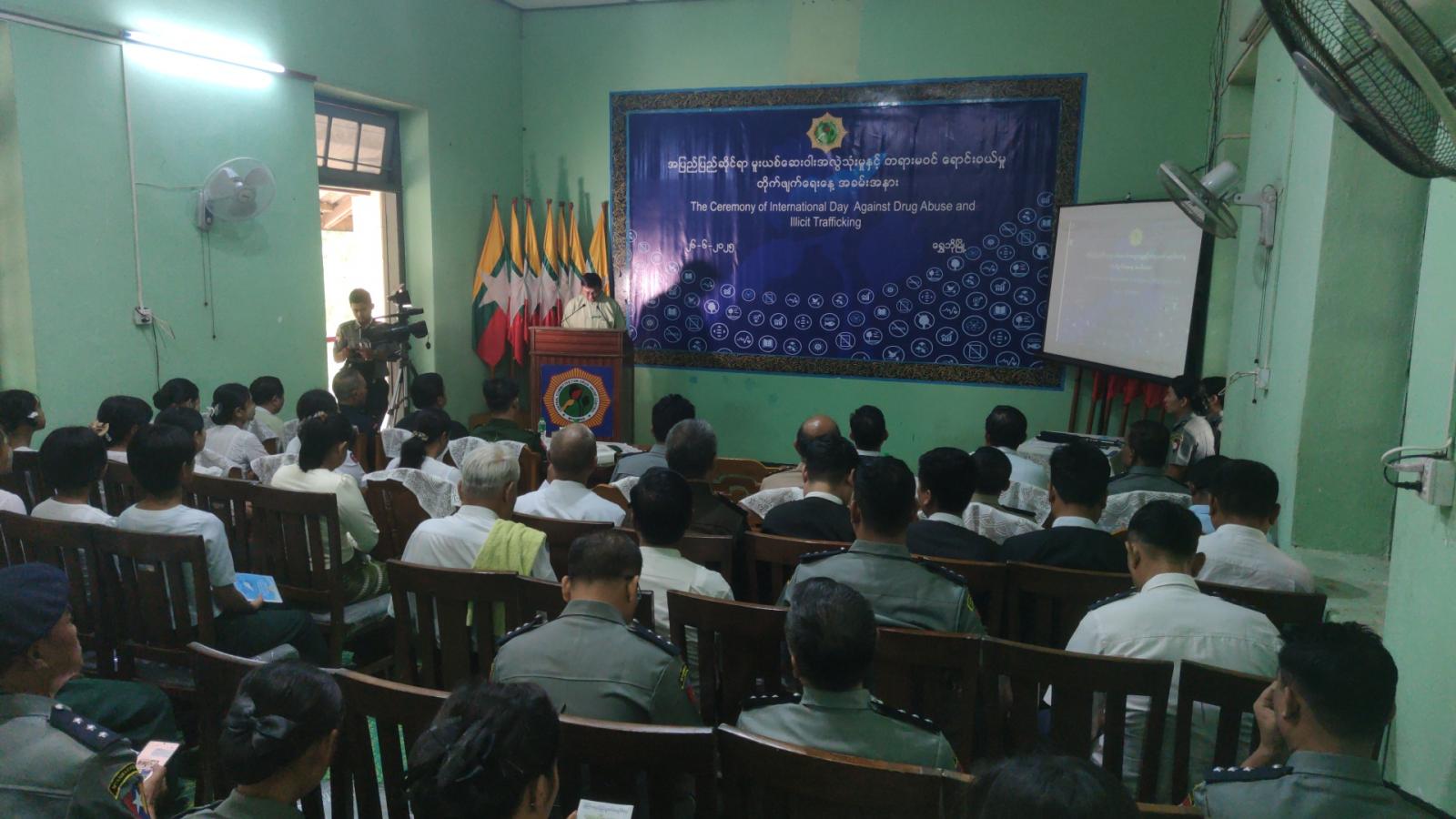 ရှေးဦးစွာ ရွှေဘိုခရိုင် မူးယစ်ဆေးဝါးနှင့် စိတ်ကိုပြောင်းလဲစေသောဆေးဝါးများ အန္တရာယ်တားဆီးကာကွယ်ရေးအဖွဲ့ဥက္ကဋ္ဌ ဦးသောင်းတင်ထွေးက ပြည်ထဲရေးဝန်ကြီးဌာန၊ ပြည်ထောင်စုဝန်ကြီး၊ ဒုတိယဗိုလ်ချုပ်ကြီး ထွန်းထွန်းနောင်ထံမှပေးပို့သည့် သဝဏ်လွှာအာဖတ်ကြားခဲ့ပြီး အတွင်းရေးမှူး ခေတ္တခရိုင် ရဲတပ်ဖွဲ့မှူးက ဖမ်းဆီးရမိမူးယစ်ဆေးဝါးများ မီးရှို့ဖျက်ဆီးခြင်းနှင့်ပတ်သက်၍ ရှင်းလင်း တင်ပြခဲ့ပြီးနောက် တက်ရောက်လာသူများအား မူးယစ်ဆေးဝါးနှင့်ပတ်သတ်၍ အသိပညာပေး Video Clip အားပြသခဲ့ပြီး ပြန်ကြားရေးနှင့်ပြည်သူ့ဆက်ဆံရေးဦးစီးဌာနမှ ထုတ်ဝေသော “၂၀၂၅ ခုနှစ် အပြည်ပြည်ဆိုင်ရာ မူးယစ်ဆေးဝါးအလွဲသုံးမှုနှင့် တရားမဝင်ရောင်းဝယ်မှု တိုက်ဖျက်ရေးနေ့ အထိမ်းအမှတ်” သတင်းစကား လက်ကမ်းစာစောင်များကို ပြန်ကြားရေးနှင့်ပြည်သူ့ဆက်ဆံရေးဦးစီးဌာန ဝန်ထမ်းများမှ ဖြန့်ဝေခဲ့ကြောင်း သိရသည်။