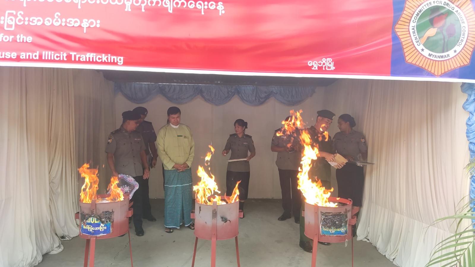 ထို့နောက် ၂၀၂၄-၂၀၂၅ ဖမ်းဆီးရမိသည့် စိတ်ကြွရူးသွပ်ဆေးပြား ၄၄၄၆ ပြား၊ ခန့်မှန်းကာလ တန်ဖိုးကျပ်(၁၃၃၄၁၀၀၀)(ကျပ်တစ်ရာ့သုံးဆယ့်သုံးသိန်းလေးသောင်း တစ်ထောင်)ကို ရွှေဘိုခရိုင် မူးယစ်ဆေးဝါးနှင့် စိတ်ကိုပြောင်းလဲစေသောဆေးဝါးများ အန္တရာယ်တားဆီးကာကွယ်ရေးအဖွဲ့ဥက္ကဋ္ဌနှင့်တာဝန်ရှိသူများ၊ တက်ရောက်လာသူများက မီးရှို့ဖျက်ဆီးမည့် မူးယစ်ဆေးဝါးများအား စမ်းသပ်ကြည့်ရှုစစ်ဆေးပြီး သတ်မှတ်နေရာများမှ မူးယစ်ဆေးဝါးများကို မီးရှို့ဖျက်စီးခဲ့ကြောင်း သိရသည်။