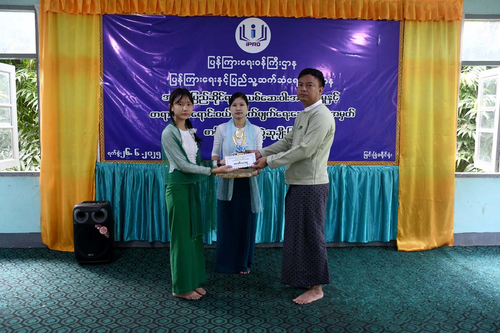 အပြည်ပြည်ဆိုင်ရာ မူးယစ်ဆေးဝါးအလွဲသုံးမှုနှင့် တရားမဝင်ရောင်းဝယ်မှုတိုက်ဖျက်ရေးနေ့အထိမ်းအမှတ် အထက်တန်း၊ အလယ်တန်းနှင့် မူလတန်းအဆင့် စာစီစာကုံးပြိုင်ပွဲတွင် ပထမဆု၊ ဒုတိယဆု၊ တတိယဆု၊ နှစ်သိမ့်ဆု ရရှိခဲ့သည့် ကျောင်းသား၊ ကျောင်းသူများအား ခရိုင်စီမံအုပ်ချုပ်ရေးအဖွဲ့ဥက္ကဋ္ဌနှင့် အဖွဲ့ဝင်များ၊ ခရိုင်ပြန်ကြားရေးနှင့်ပြည်သူ့ဆက်ဆံရေးဦးစီးဌာန လက်ထောက်ညွှန်ကြားရေးမှူး၊ မြို့နယ်စီမံအုပ်ချုပ်ရေးအဖွဲ့ဥက္ကဋ္ဌ ဦးစိုးထွဋ်နှင့် တာဝန်ရှိသူများမှ ဆုချီးမြှင့်ပေးအပ်ရာ ကျောင်းသား၊ ကျောင်းသူများက လက်ခံရယူခဲ့ကြောင်း သိရသည်။