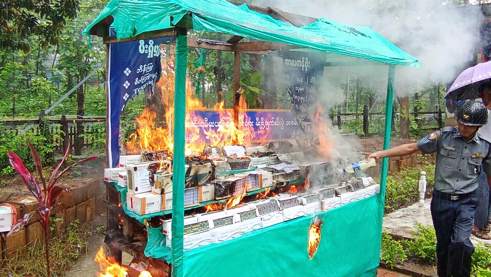 စစ်ကိုင်းတိုင်းဒေသကြီး၊ တမူးမြို့တွင် အပြည်ပြည်ဆိုင်ရာ မူးယစ်ဆေးဝါးအလွဲသုံးမှုနှင့် တရားမဝင်ရောင်းဝယ်မှု တိုက်ဖျက်ရေးနေ့အထိမ်းအမှတ် မူးယစ်ဆေးဝါးများ မီးရှို့ဖျက်ဆီးခြင်း အခမ်းအနားကို ယနေ့နံနက်(၈)နာရီအချိန်က တမူးခရိုင်ရဲတပ်ဖွဲ့မှူးရုံး၌ ကျင်းပပြုလုပ်ခဲ့ကြောင်း သိရသည်။