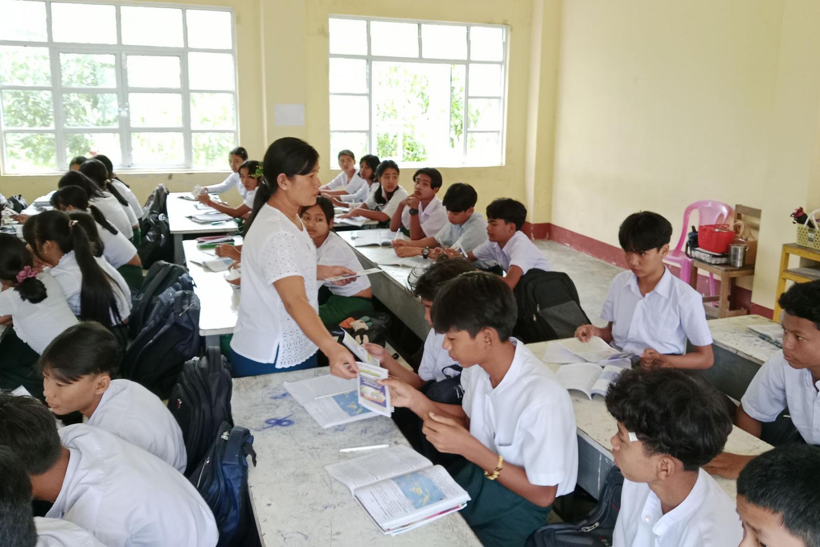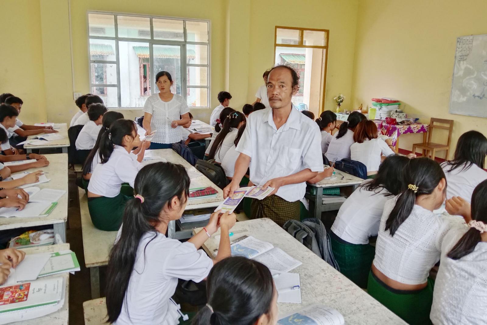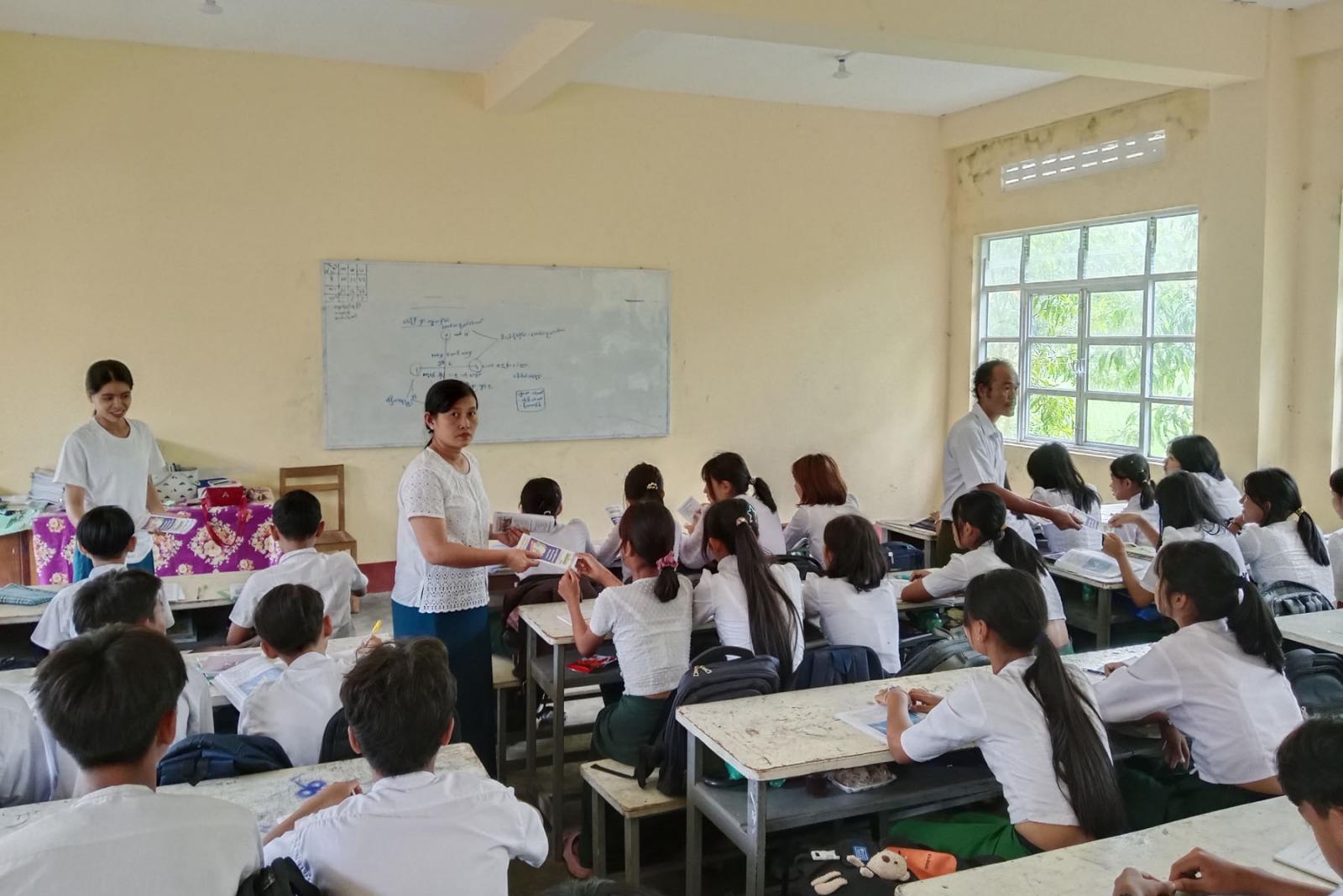 တနင်္သာရီတိုင်းဒေသကြီး၊ ဘုတ်ပြင်းခရိုင်၊ ဘုတ်ပြင်းမြို့နယ်၌ ၂၀၂၅ ခုနှစ် ဇွန်လ (၂၆) ရက်နေ့တွင် ကျရောက်သည့် အပြည်ပြည်ဆိုင်ရာ မူးယစ်ဆေးဝါး အလွဲသုံးမှုနှင့် တရားမဝင် ရောင်းဝယ်မှု တိုက်ဖျက်ရေးနေ့ အထိမ်းအမှတ်အဖြစ် ပြန်ကြားရေးနှင့်ပြည်သူ့ဆက်ဆံရေးဦးစီးဌာန ရုံးချုပ်မှ ထုတ်ဝေသည့် သတင်းစကား လက်ကမ်းစာစောင်များကို ယနေ့နံနက်က ဘုတ်ပြင်းမြို့ ပြန်ကြားရေးနှင့်ပြည်သူ့ဆက်ဆံရေးဦးစီးဌာနမှ မြို့နယ်ဦးစီးမှူးနှင့် ဝန်ထမ်းများက အခြေခံပညာကျောင်းများ၌ အသိပညာပေး ဖြန့်ဝေပေးလျက်ရှိသည်။