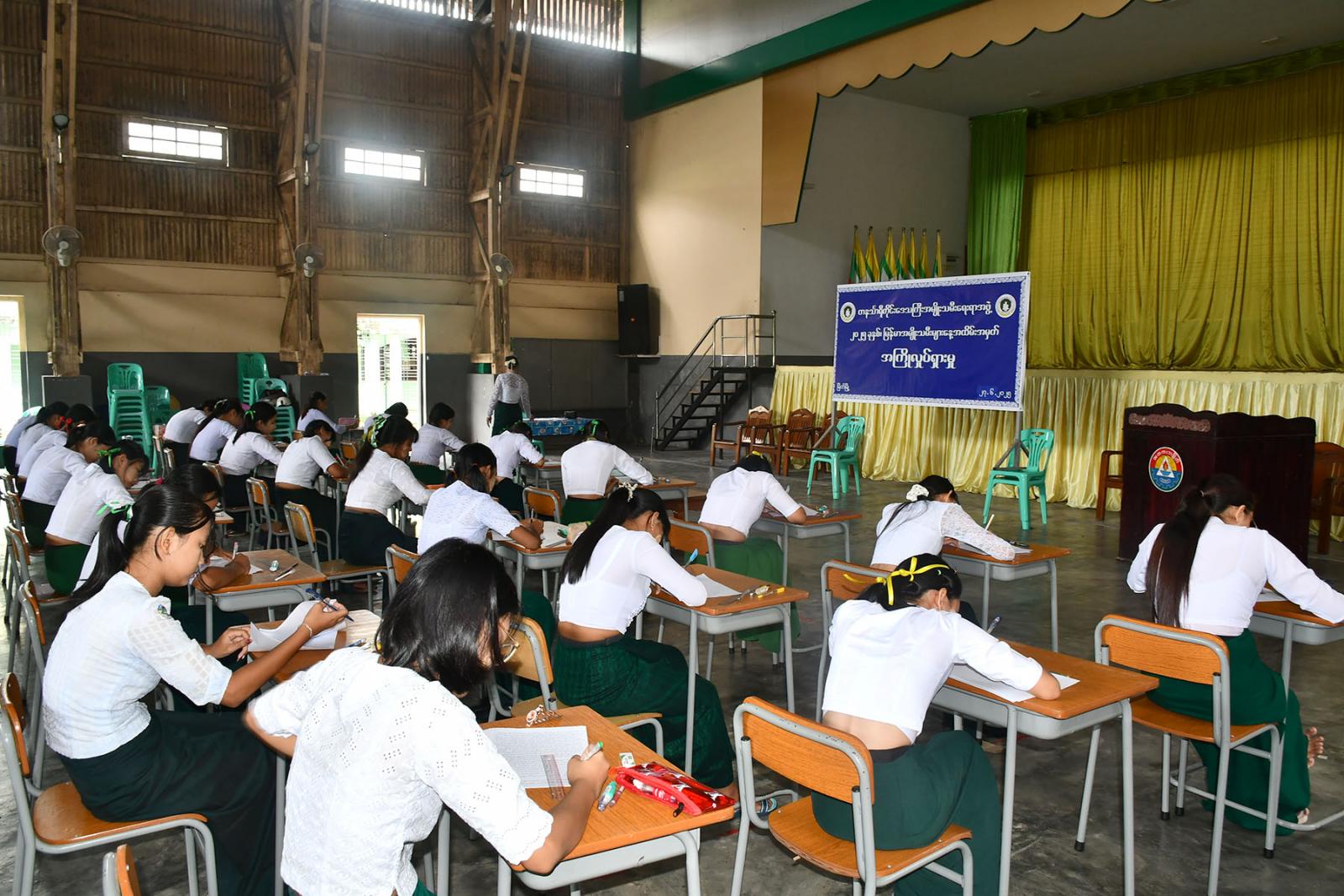 စာစီစာကုံးပြိုင်ပွဲကို “ မြန်မာအမျိုးသမီးများနေ့” ခေါင်းစဉ်ဖြင့် ကျင်းပရာ မြို့နယ်အတွင်းရှိ အလယ်တန်းအဆင့်ကျောင်းသား၊ ကျောင်းသူ ၄၀ နှင့် အထက်တန်းအဆင့် ကျောင်းသား၊ ကျောင်းသူ ၃၀ ယှဉ်ပြိုင်ကြရာ ခရိုင်အမျိုးသမီးရေးရာအဖွဲ့ဥက္ကဋ္ဌ ဒေါ်ခင်မဉ္ဇူဝင်းနှင့် ခရိုင်/မြို့နယ် အမျိုးသမီးရေးရာအဖွဲ့ဝင်များ၊ ခရိုင်/မြို့နယ်ပညာရေးမှူးရုံးမှ တာဝန်ရှိသူများ ကြည့်ရှုအားပေးခဲ့ကြသည်။