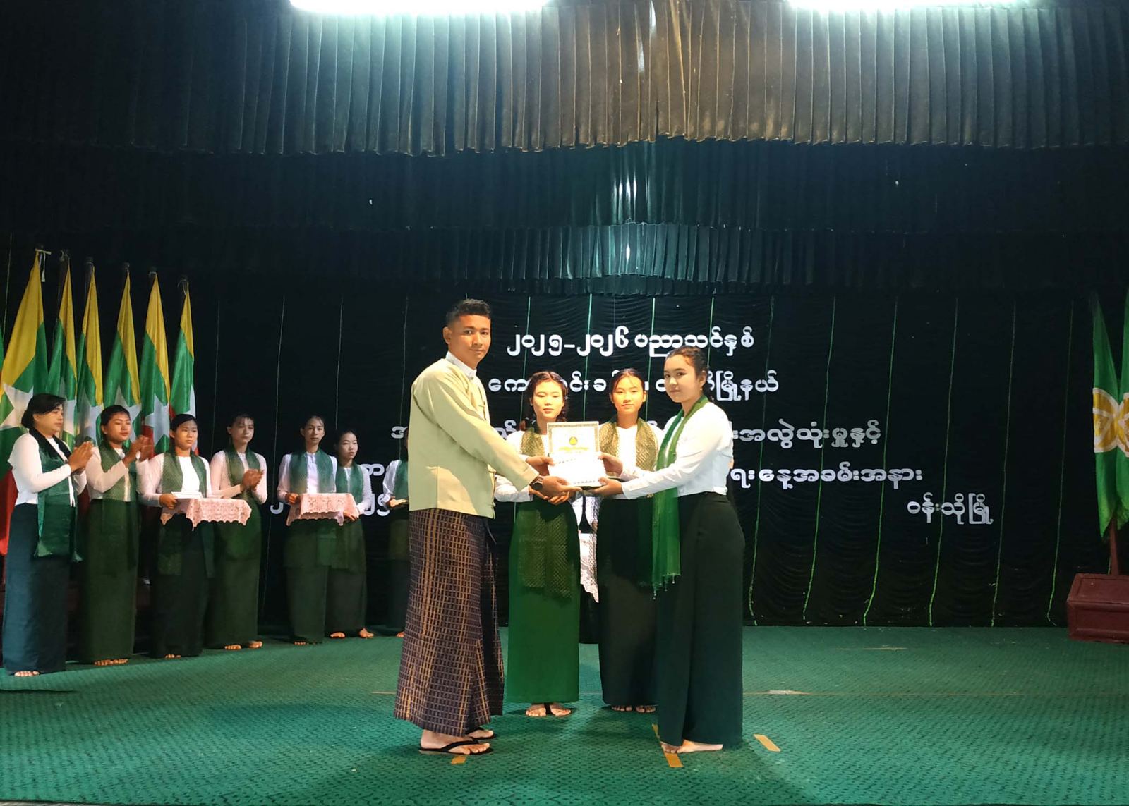 အခမ်းအနားတွင် ကောလင်းခရိုင် စီမံအုပ်ချုပ်ရေးအဖွဲ့၊ အဖွဲ့ဝင်(၁)၊ ဒုတိယဗိုလ်မှူးကြီး သိန်းဇော်လင်းက အဖွင့်အမှာစကားပြောကြားပြီး၊မြို့နယ်စီမံအုပ်ချုပ်ရေးအဖွဲ့ဥက္ကဋ္ဌ ဦးစည်သူကျော်က အမှာစကားပြောကြားသည်။ ထို့နောက်အပြည်ပြည်ဆိုင်ရာ မူးယစ်ဆေးဝါးအလွဲသုံးမှုနှင့် တရားမဝင် ရောင်းဝယ်မှု တိုက်ဖျက်ရေးနေ့အထိမ်းအမှတ် မြို့နယ်အဆင့်(ထက်၊လယ်၊မူ)စာစီစာကုံးနှင့်ပန်းချီ ပြိုင်ပွဲတို့တွင် ပထမ၊ဒုတိယ၊တတိယ၊နှစ်သိမ့်ဆုရရှိခဲ့ကြသော ကျောင်းသား၊ ကျောင်းသူ (၂၄)ဦးတို့အား တာဝန်ရှိသူများက ဂုဏ်ပြုမှတ်တမ်းလွှာနှင့်ဆုများကို အသီးသီးပေးအပ် ချီးမြှင့်ခဲ့ကြသည်။