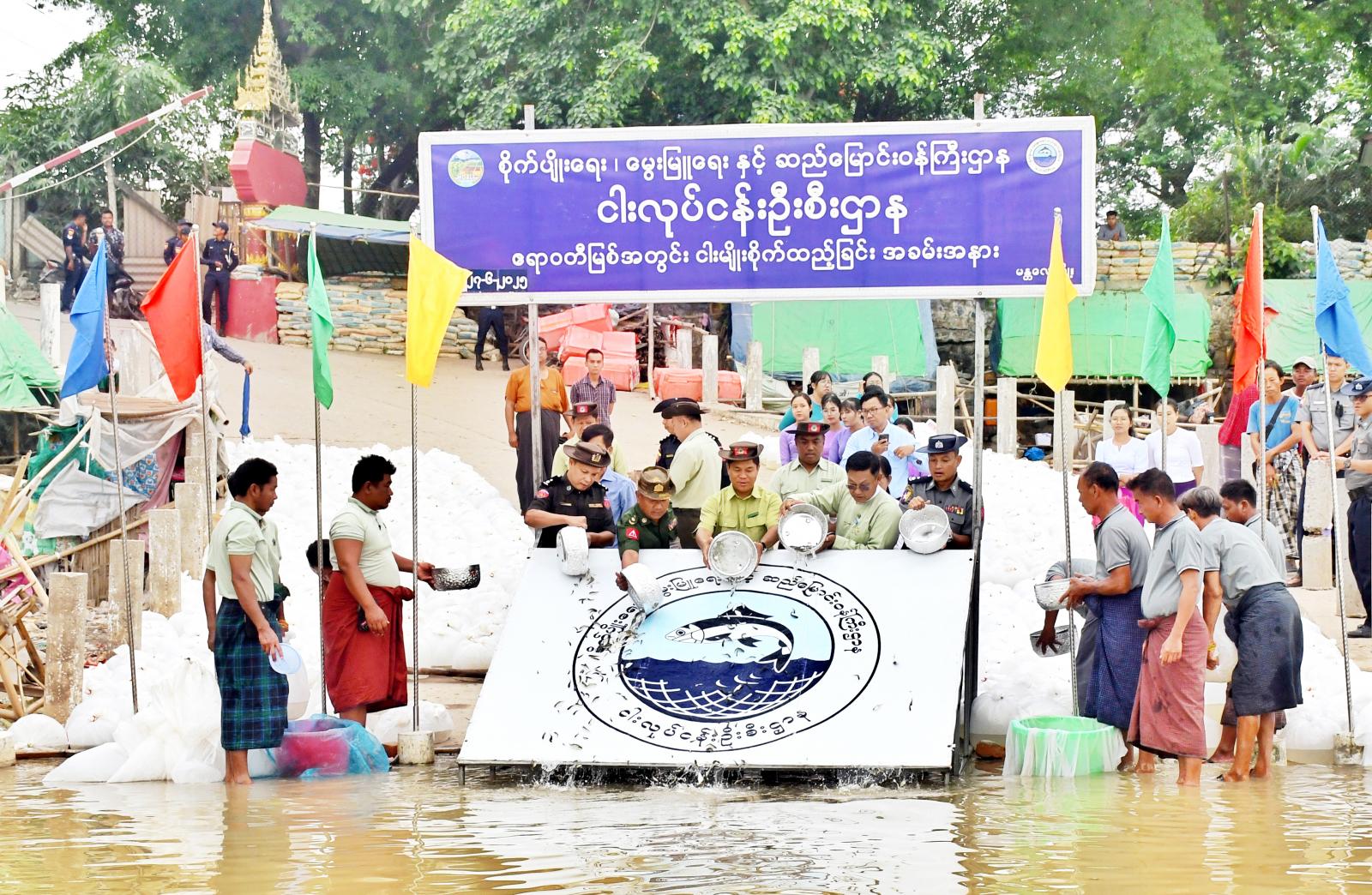မန္တလေးတိုင်းဒေသကြီးငါးလုပ်ငန်းဦးစီးဌာနက ကြီးမှူး၍ ဧရာဝတီမြစ်အတွင်း ဒုတိယအကြိမ် မြောက် ငါးမျိုးစိုက်ထည့်ခြင်းအခမ်းအနားကို ဇွန် ၂၇ရက် နံနက် ၈နာရီက မန္တလေး အောင်မြေသာစံမြို့နယ် မင်းတဲအီကင်းရပ်ကွက်၊၂၂လမ်းနှင့်မြို့ပတ်လမ်းထောင့်ရှိ ကျွဲစွန်းဆိပ်ကမ်းတွင် ကျင်းပသည်။