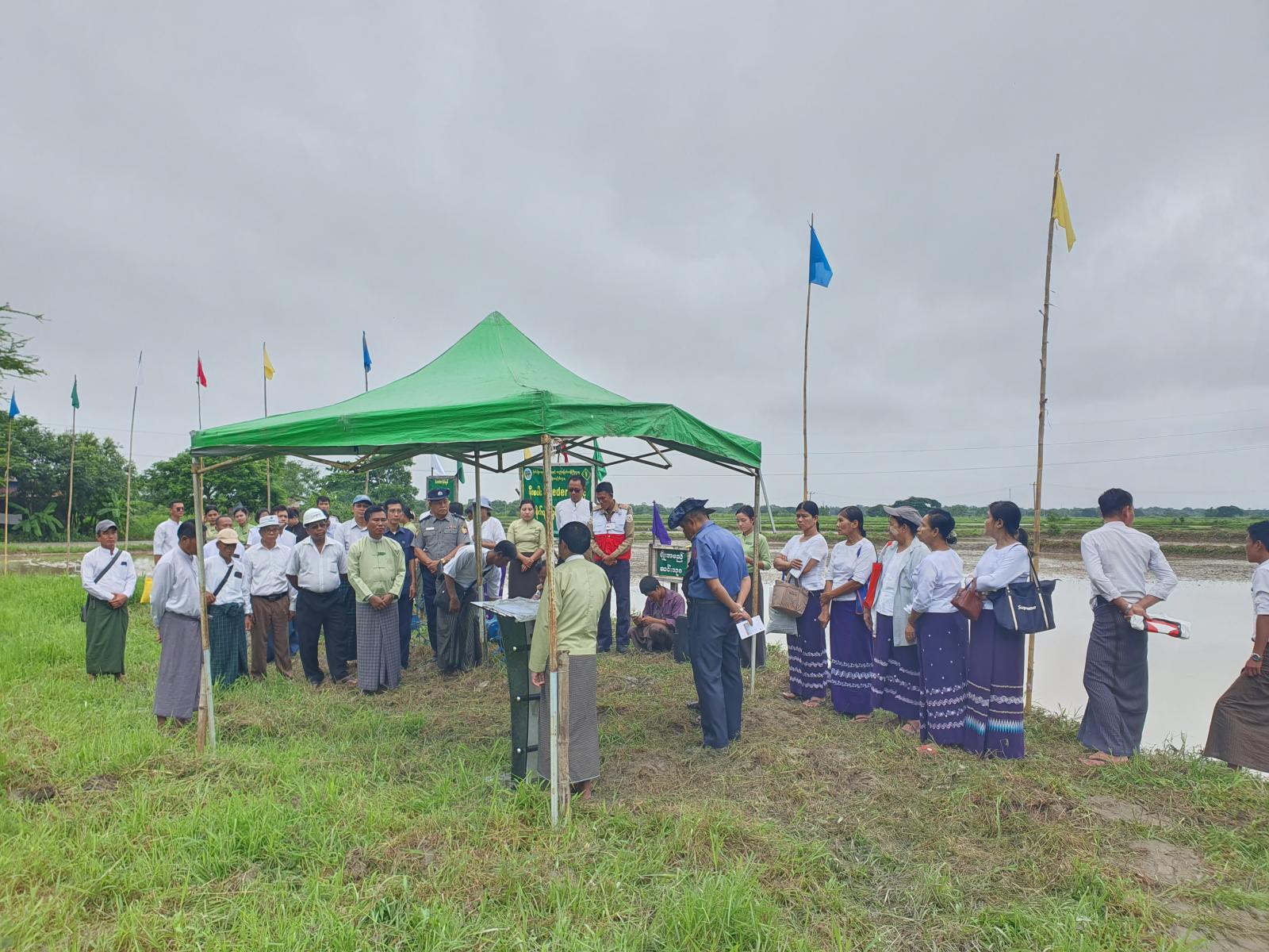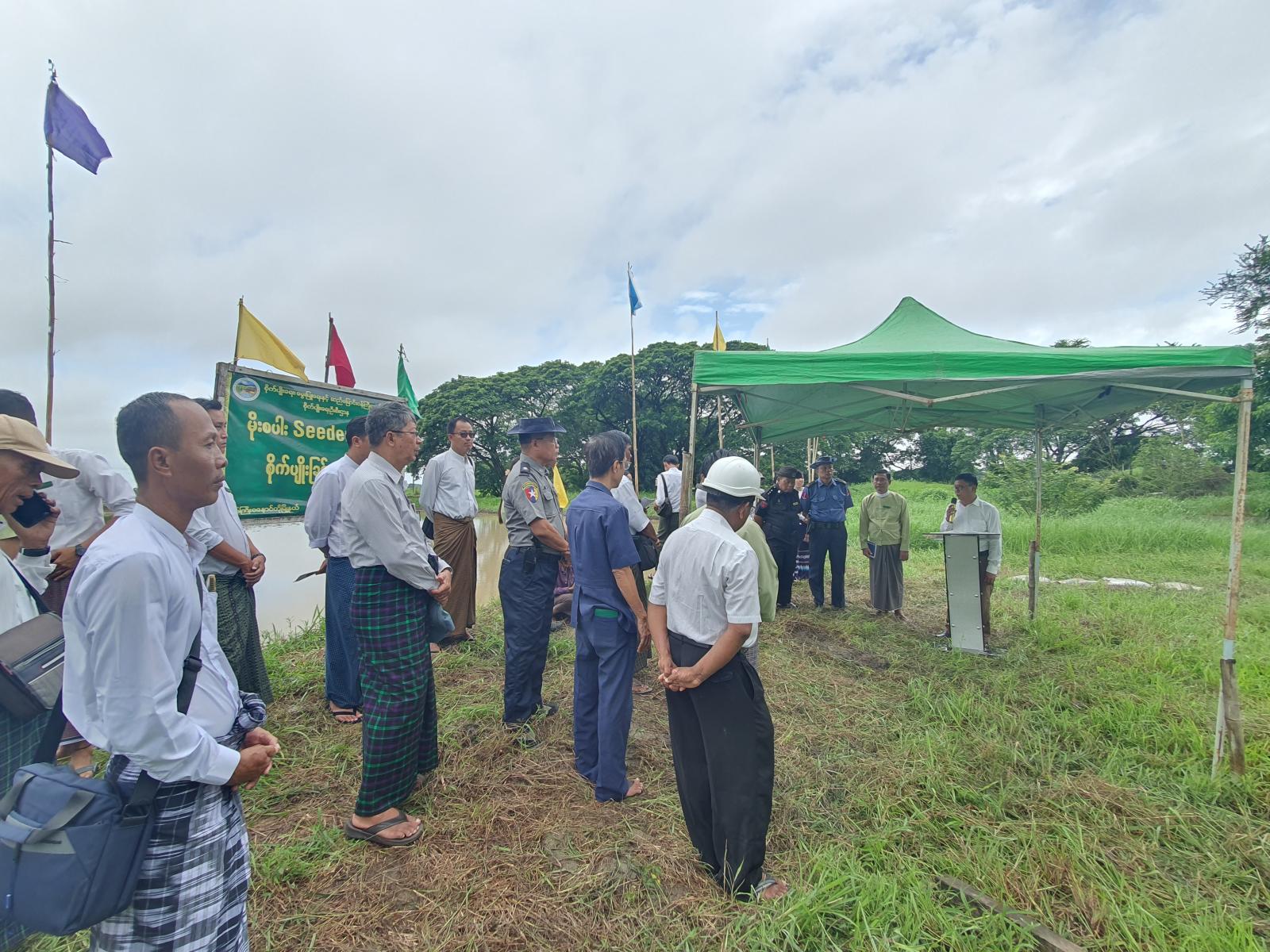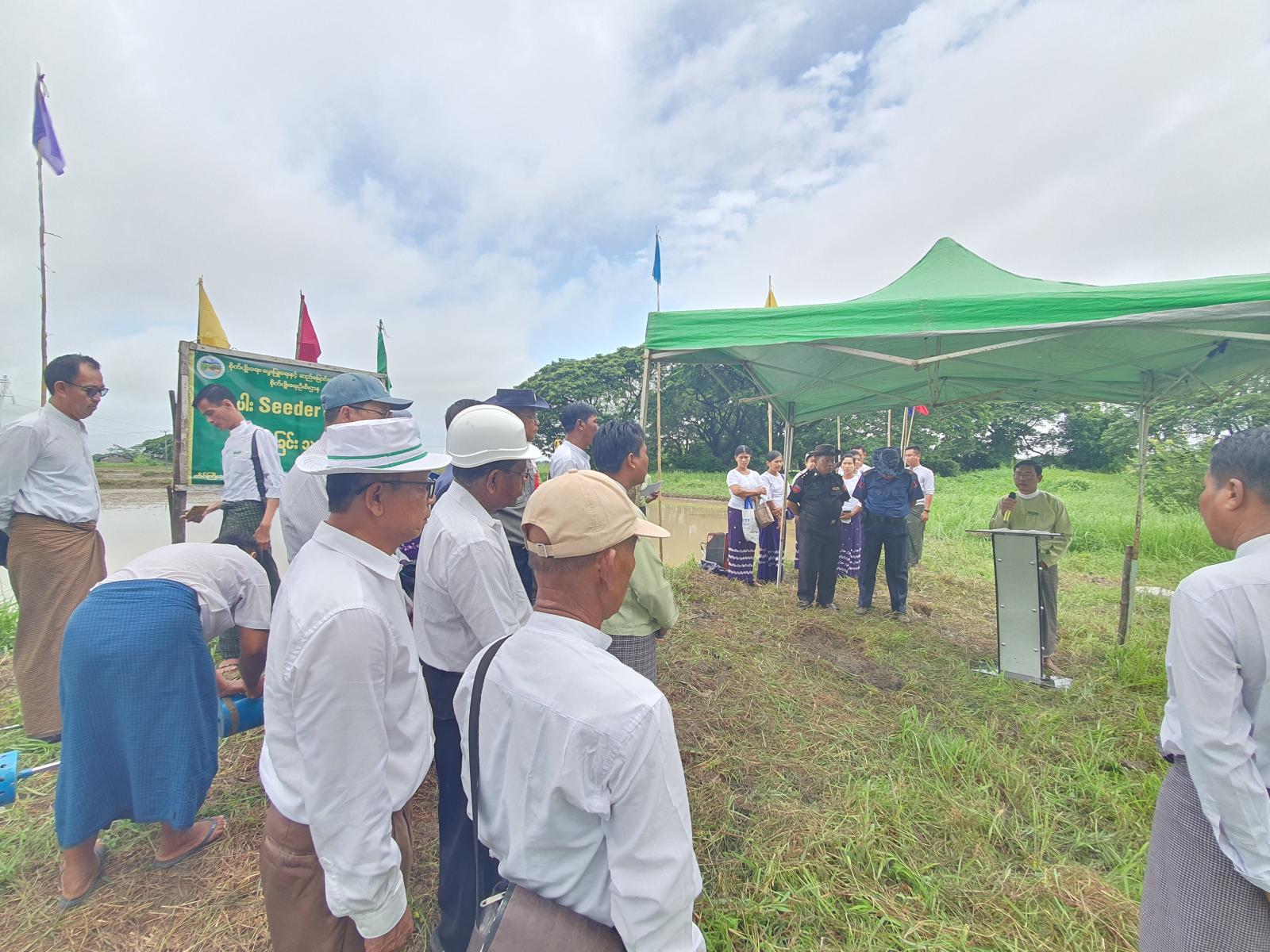 အဆိုပါ မိုးစပါးမျိုးစေ့ချကိရိယာ(Seeder)ဖြင့်စိုက်ပျိုးခြင်းကွင်းသရုပ်ပြပွဲသို့ မြို့နယ်စီမံအုပ်ချုပ်ရေးအဖွဲ့ဥက္ကဋ္ဌဦးမြင့်လှိုင်နှင့်အဖွဲ့ဝင်များ၊ မြို့နယ်စိုက်/ကြပ်အဖွဲ့များ၊ ဌာနဆိုင်ရာများ၊ ရပ်ကွက်အုပ်ချုပ်ရေးအဖွဲ့များနှင့်တောင်သူများ တက်ရောက်ခဲ့ကြသည်။