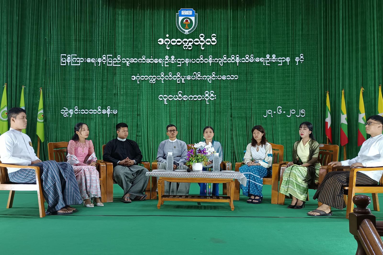 ကျောင်းသား၊ ကျောင်းသူ လူငယ်လူရွယ်လေးများ၏ ကာယ၊ ဉာဏ၊ စာရိတ္တ၊ မိတ္တ၊ ဘောဂစသည့် ဗလငါးတန်ဘက်စုံဖွံ့ဖြိုးတိုးတက်စေရေးနှင့် မိမိပတ်ဝန်းကျင်ကို တန်ဖိုးထားထိန်းသိမ်းတတ်စေရန် ရည်ရွယ်ချက်ဖြင့် ပြန်ကြားရေးနှင့်ပြည်သူ့ဆက်ဆံရေးဦးစီးဌာန၊ ပတ်ဝန်းကျင်ထိန်းသိမ်းရေးဦးစီးဌာနနှင့် ဒဂုံတက္ကသိုလ်တို့ ပူးပေါင်းကျင်းပသော လူငယ်စကားဝိုင်း ဆွေးနွေးပွဲကို ယမန်နေ့နံနက် (၁၀) နာရီက ဒဂုံမြို့သစ် (အရှေ့ပိုင်း) မြို့နယ်ရှိ ဒဂုံတက္ကသိုလ် ဘွဲ့နှင်းသဘင်ခန်းမတွင် ကျင်းပပြုလုပ်ခဲ့ကြောင်း သိရသည်။