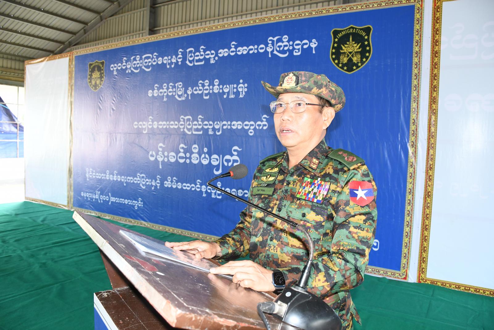 ထို့နောက် ကာကွယ်ရေးဦးစီးချုပ်ရုံး(ကြည်း)မှ ဒုတိယဗိုလ်ချုပ်ကြီးသက်ပုံ၊ တိုင်းဒေသကြီးအစိုးရအဖွဲ့ လမ်းပန်းဆက်သွယ်ရေးဝန်ကြီး ဦးခင်မောင်အေးနှင့် ခရိုင်စီမံအုပ်ချုပ်ရေးအဖွဲ့ဥက္ကဋ္ဌ ဦးမျိုးအောင်တို့က ငလျင်ဘေးသင့်ပြည်သူများအတွက် နိုင်ငံသားစိစစ်ရေးကတ်ပြား (၁၀၁) ခုကို လည်းကောင်း၊ လူဝင်မှုကြီးကြပ်ရေးနှင့် ပြည်သူ့အင်အားဝန်ကြီးဌာန စစ်ကိုင်းခရိုင်ဦးစီးမှူး ဦးညီညီဇော်က အိမ်ထောင်စုလူဦးရေစာရင်း (၁၆) ခုကိုလည်းကောင်း ပေးအပ်ခဲ့ကြသည်။
