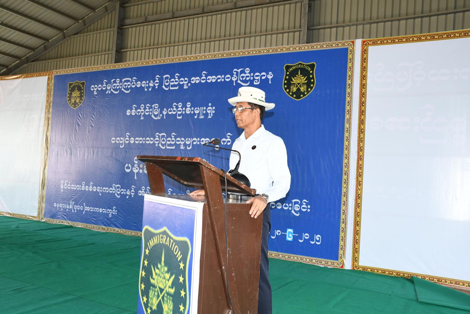 ဆက်လက်ပြီး ကာကွယ်ရေးဦးစီးချုပ်ရုံး(ကြည်း)မှ ဒုတိယဗိုလ်ချုပ်ကြီးသက်ပုံနှင့် တိုင်းဒေသကြီးအစိုးရအဖွဲ့ လမ်းပန်းဆက်သွယ်ရေးဝန်ကြီး ဦးခင်မောင်အေးတို့က အမှာစကားများ ပြောကြားကြပြီး ခရိုင်စီမံအုပ်ချုပ်ရေးအဖွဲ့ဥက္ကဋ္ဌ ဦးမျိုးအောင်က ငလျင်ကြောင့် ထိခိုက်ပျက်စီးမှုများအား ရှင်းလင်းရေးလုပ်ငန်းများ ဆောင်ရွက်ပြီးစီးမှုနှင့် ပြန်လည်ထူထောင်ရေးလုပ်ငန်းများ ဆောင်ရွက်ပေးနေမှုအခြေအနေများကို ရှင်းလင်းပြောကြားခဲ့သည်။