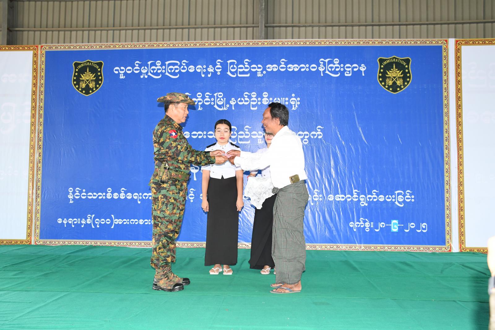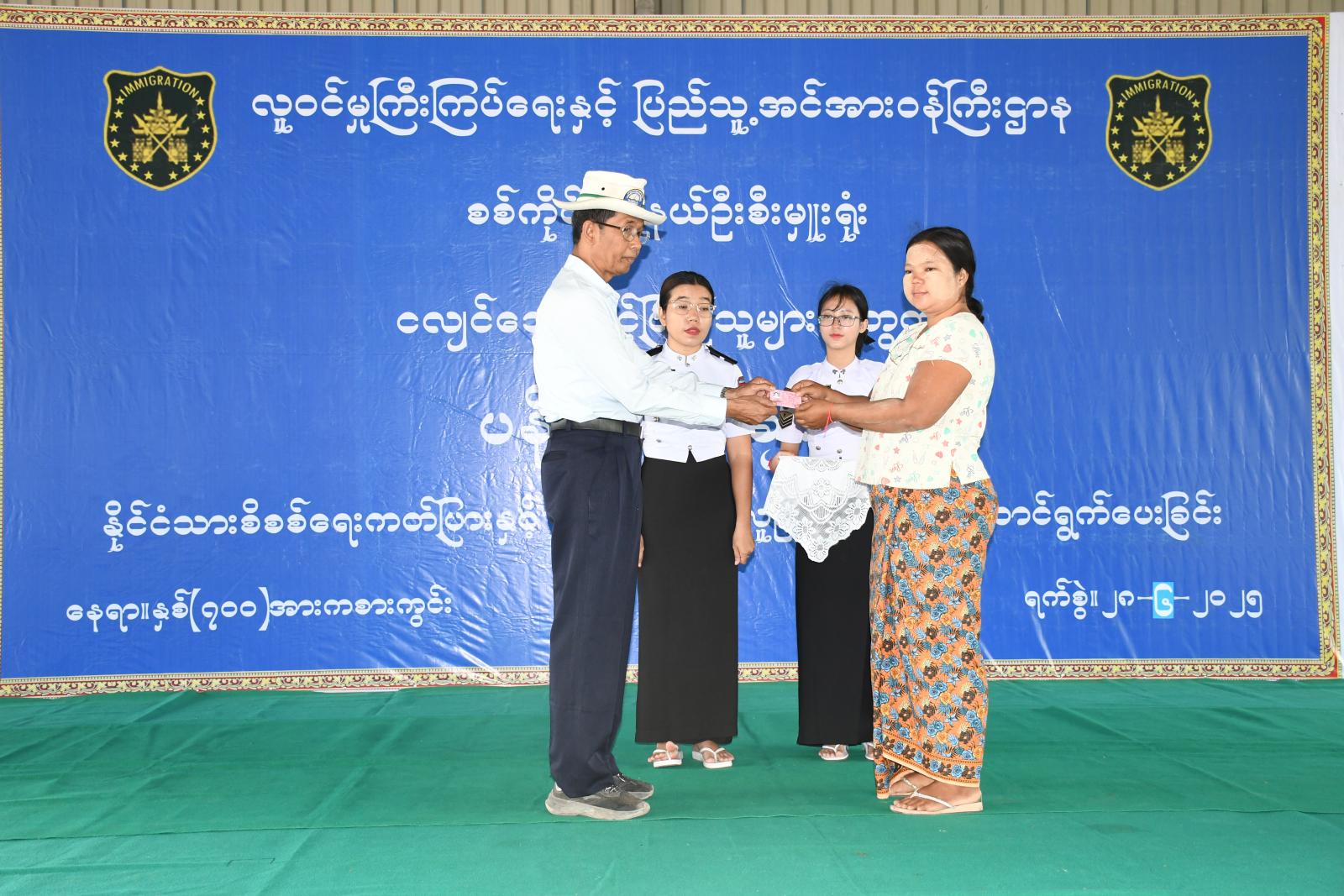 စစ်ကိုင်းတိုင်းဒေသကြီး၊ စစ်ကိုင်းမြို့၌ ငလျင်ဘေးသင့်ပြည်သူများအတွက် နိုင်ငံသားစိစစ်ရေးကတ်ပြားများနှင့် အိမ်ထောင်စုလူဦးရေစာရင်းများ ပေးအပ်ပွဲအခမ်းအနားကို ဇွန်လ (၂၈) ရက်၊ နံနက် (၈) နာရီအချိန်က စစ်ကိုင်းမြို့၊ နှစ် (၇၀၀) ဘောလုံးကွင်း၊ အားကစားခန်းမ၌ ကျင်းပပြုလုပ်ခဲ့သည်။