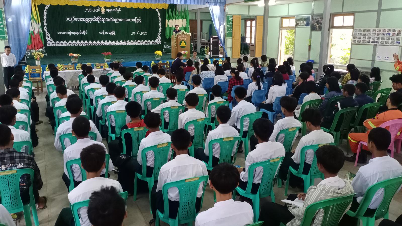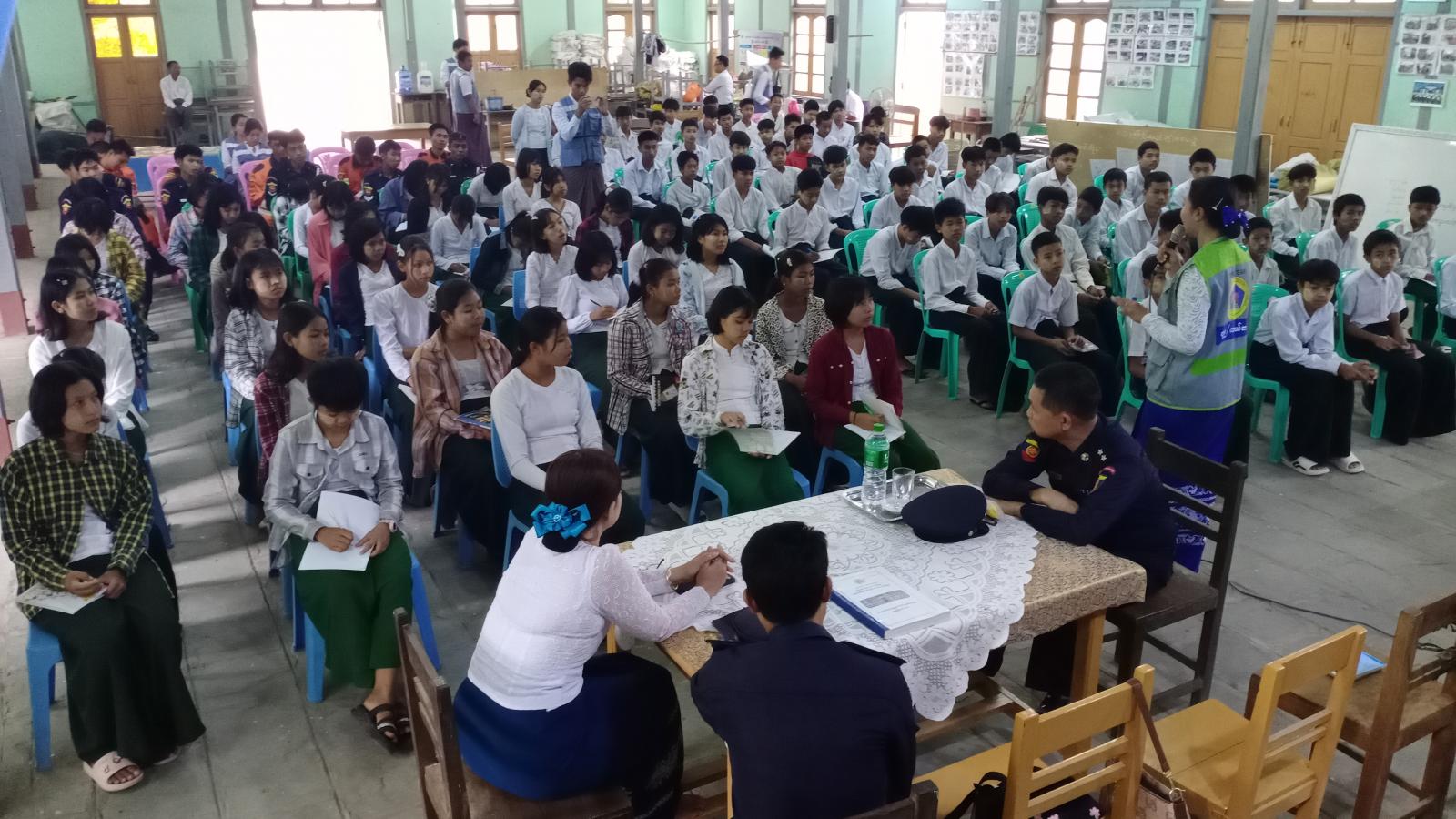 အဆိုပါအသိပညာပေးဟောပြောပွဲတွင် ခရိုင်မီးသတ်ဦးစီးဌာန ဒုတိယဦးစီးမှူး ဦးချမ်းငြိမ်းစိုးက မီးဘေးအန္တရာယ်ကြိုတင်ကာကွယ်ရေးအကြောင်းများကိုလည်းကောင်း၊ ခရိုင်ပြန်ကြားရေးနှင့်ပြည်သူ့ဆက်ဆံရေးဦးစီးဌာန လက်ထောက်ညွှန်ကြားရေးမှူး ဒေါ်နန်းမြင့်က မြန်မာနိုင်ငံတွင် ဖြစ်ပွားတတ်သည့် သဘာဝဘေးအန္တရာယ်အမျိုးအစားများအကြောင်းကိုလည်းကောင်း၊ ခရိုင်ဘေးအန္တရာယ်ဆိုင်ရာစီမံခန့်ခွဲမှုဦးစီးဌာန ဦးစီးအရာရှိ ဒေါ်အေးချမ်းဇော်က ငလျင်ဘေးအန္တရာယ်ဆိုင်ရာ သိကောင်းစရာများနှင့် ငလျင်လှုပ်ခတ်နေစဥ်အတွင်း ဝပ်၊ ကာ၊ ကိုင်ပုံစံဖြင့် နေထိုင်ပုံကို သရုပ်ပြသခဲ့ပြီး ကျောင်းသား၊ ကျောင်းသူများကလည်း လက်တွေ့သရုပ်ပြလေ့ကျင့်ခဲ့ကြကြောင်း သိရသည်။