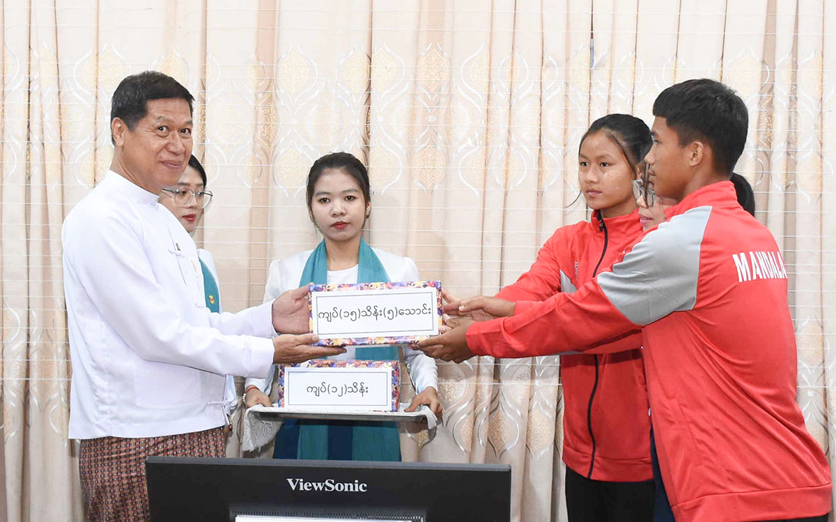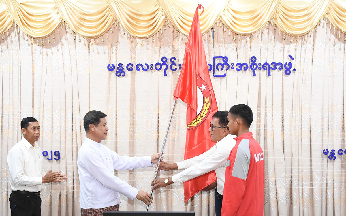 ၂၀၂၅ ခုနှစ် တိုင်းဒေသကြီးနှင့်ပြည်နယ် အသက် (၁၈)နှစ်အောက် ပြေးခုန်ပစ်ပြိုင်ပွဲနှင့် အမျိုးသားဘောလုံးပြိုင်ပွဲသို့ ဝင်ရောက်ယှဉ်ပြိုင်မည့် မန္တလေးတိုင်းဒေသကြီး ပြေးခုန်ပစ်အသင်းနှင့် အမျိုးသားဘောလုံးအသင်းတို့အား အောင်နိုင်ရေးအလံပေးအပ်ပွဲအခမ်းအနားကို ဇွန်လ ၂၇ ရက်နေ့ နံနက်ပိုင်းက မန္တလေးတိုင်းဒေသကြီးအစိုးရအဖွဲ့ရုံး အစည်းအဝေးခန်းမတွင် ကျင်းပခဲ့သည်။