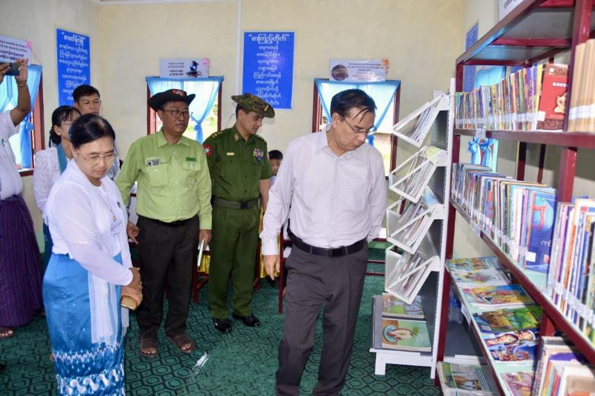 ထို့နောက် တိုင်းဒေသကြီး ဝန်ကြီးချုပ်နှင့် တာဝန်ရှိသူများက စာကြည့်တိုက်အတွင်းသို့ လှည့်လည်ကြည်ရှုခဲ့ကြပြီး သုတ/ ရသစာအုပ်စာဆောင်များနှင့် အလှူငွေကျပ်သိန်း (၃၀) ပေးအပ်ခဲ့ကာ မျိုးဆက်သစ်လူငယ်များ၊ ကျောင်းသား/သူများ စာပေဖတ်ရှုခြင်းဖြင့် အသိပညာဗဟုသုတတိုးပွား၍ လိမ္မာယဉ်ကျေးသည့် လူတော်လူကောင်းများဖြစ်စေရန် ရည်ရွယ်ဖွင့်လှစ်ပေးရခြင်းဖြစ်၍ လူငယ်များ စာကြည့်တိုက်သို့ လာရောက်စေရေး အလေးထားစည်းရုံးဆောင်ရွက်ရန် စာကြည့်တိုက်ကော်မတီဝင်များအား လမ်းညွှန်မှာကြားခဲ့သည်။ ၎င်းနောက် စာကြည့်တိုက်ဖွင့်ပွဲတွင် လာရောက်ဖျော်ဖြေခဲ့သည့် အကအဖွဲ့နှင့် ကျောင်းသား/ သူများအား ဂုဏ်ပြုချီးမြှင့်ငွေများ ပေးအပ်ခဲ့ကြောင်း သတင်းရရှိသည်။