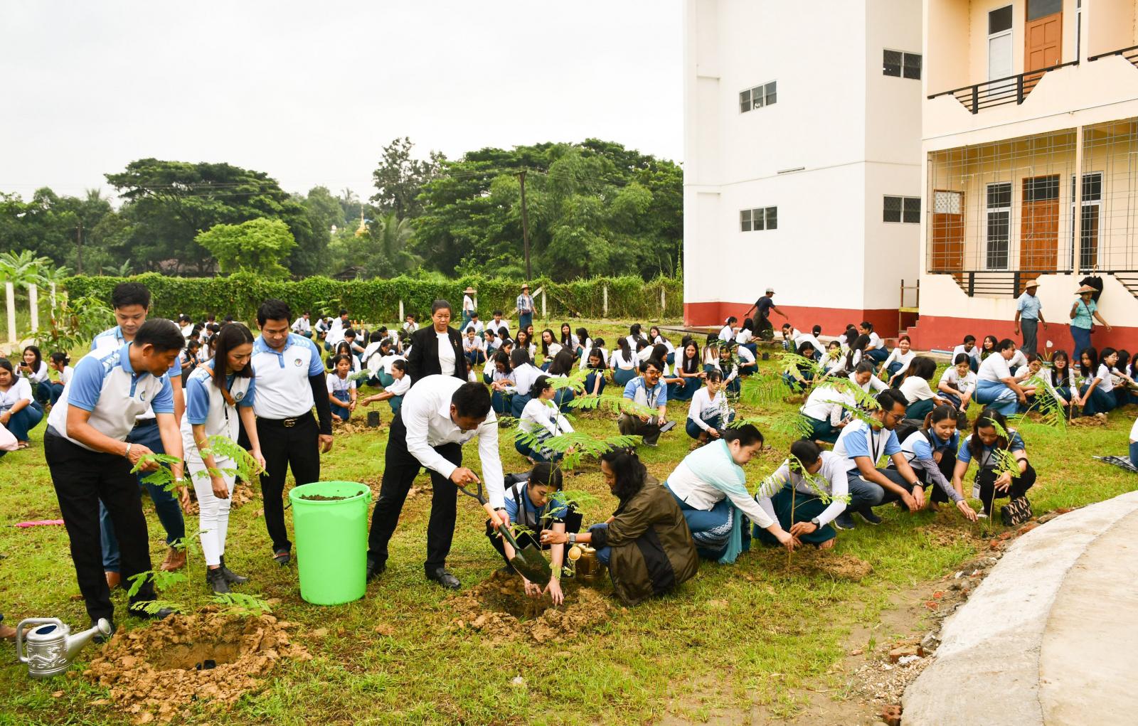 ရှေးဦးစွာ လူမှုရေးရာဝန်ကြီးဦးဌေးအောင်နှင့် တာဝန်ရှိသူများ၊ ကျောင်းသား၊ ကျောင်းသူများက ကျောင်းဝင်းအတွင်းရှိ ဒီပဆောင်တွင် စိန်ပန်းပင်၊ ပိတောက်ပင်၊ အာဆီယံသပြေပင်နှင့် ပျဥ်းမပင် အစရှိသည့် သစ်ပင်များကို စိုက်ပျိုးပေးခဲ့ကြသည်။