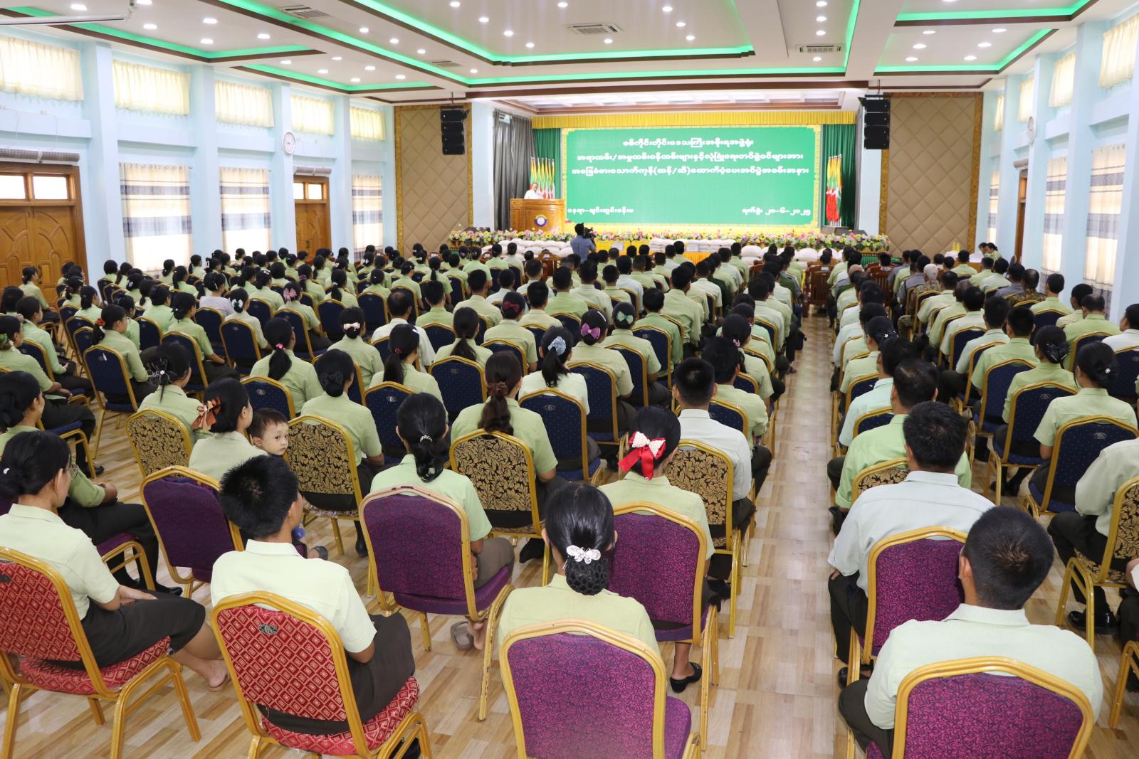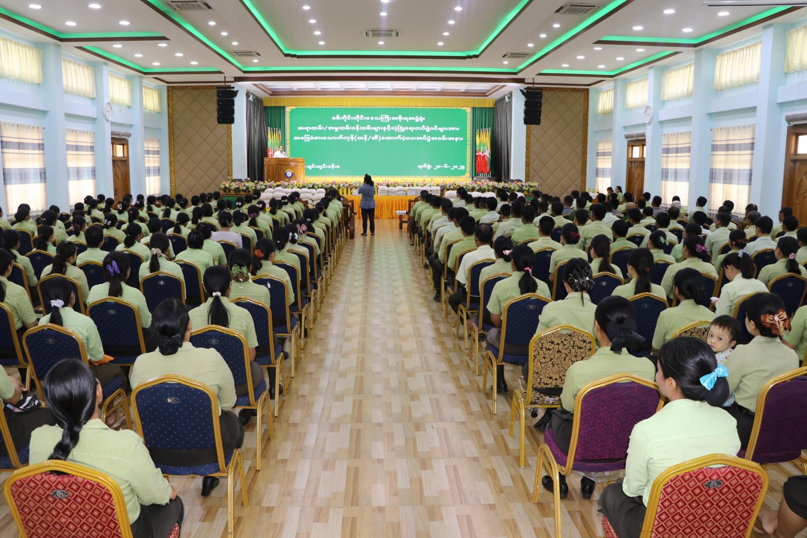 ယင်းနောက် တိုင်းဒေသကြီးဝန်ကြီးချုပ်နှင့်ဇနီး၊ တိုင်းဒေသကြီးတရားသူကြီးချုပ်နှင့်ဇနီး၊ တိုင်းဒေသကြီးအစိုးရအဖွဲ့ဝင်များနှင့်ဇနီးများက တိုင်းဒေသကြီး အထွေထွေအုပ်ချုပ်ရေးဦးစီးရုံးတွင် တာဝန်ထမ်းဆောင်နေကြသည့် အရာထမ်း/အမှုထမ်းဝန်ထမ်းများနှင့် လုံခြုံရေးတပ်ဖွဲ့ဝင်များအား ဆန်/ဆီများအား ပေးအပ်ခဲ့ကြသည်။