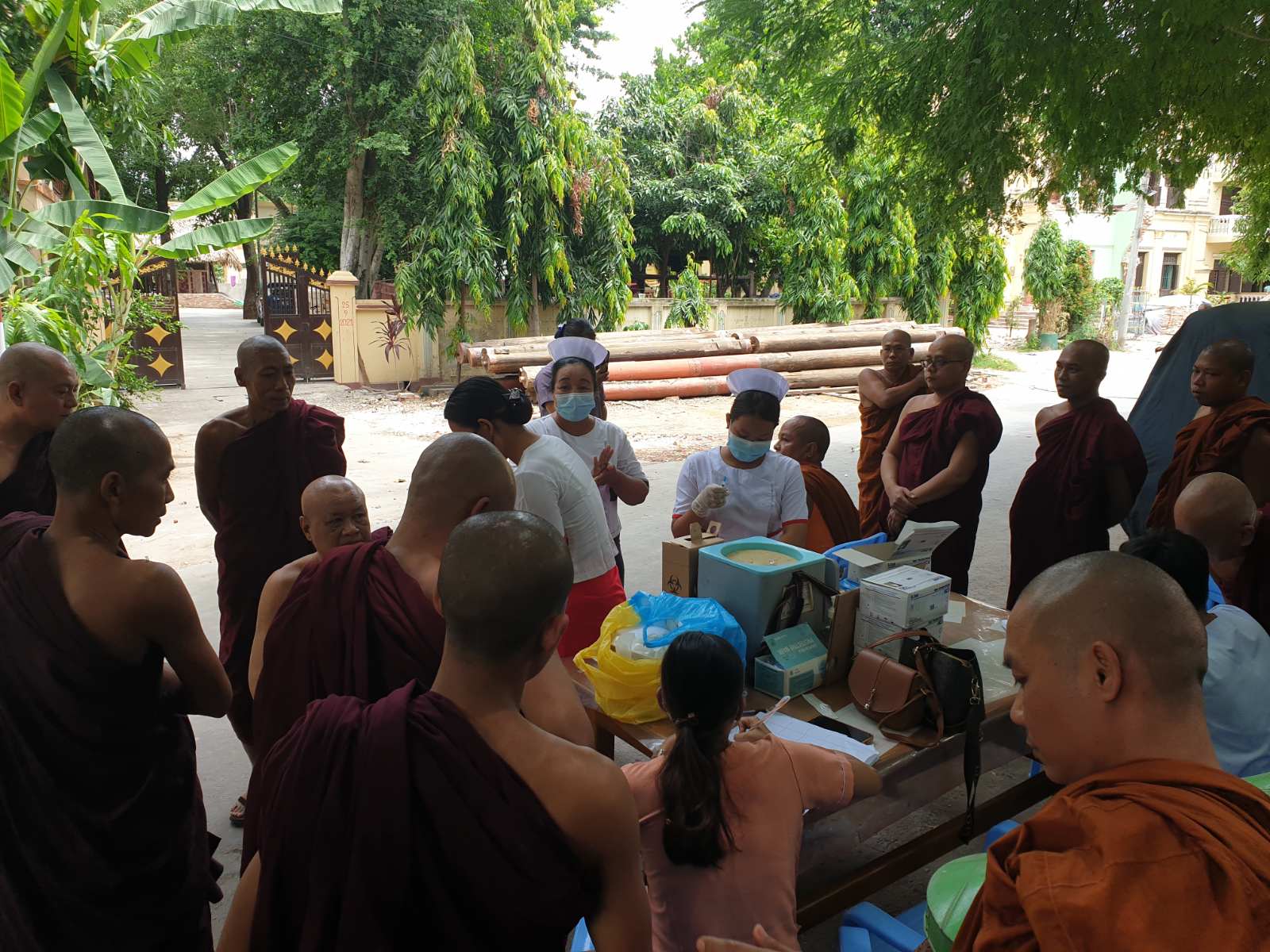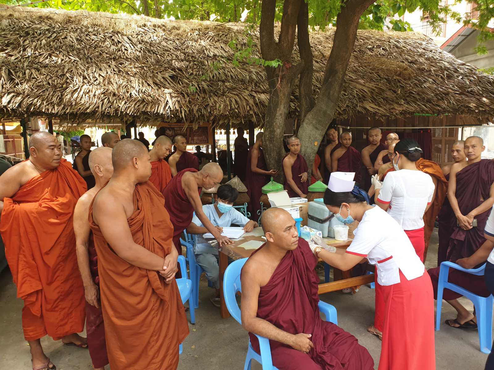 ချမ်းအေးသာစံမြို့နယ်အတွင်း ကိုဗစ်-၁၉ ရောဂါ ကာကွယ်ဆေး ထပ်ဆောင်းထိုးနှံပေးခြင်းများကို ဆောင်ရွက်ပေးလျက်ရှိရာ အမျိုးသမီး ကျန်းမာရေးဆရာမ ဒေါ်ညိုမီလှိုင်နှင့် ကျန်းမာရေးဝန်ထမ်းများမှ မိုးကောင်းတိုက်၊ အလယ်ရွှေကျောင်း တိုက်အတွင်းရှိ သက်တော် ၁၈ နှစ်အထက် သံဃာတော်များအား Pfizer အမျိုးအစား ကိုဗစ် ၁၉ ရောဂါကာကွယ်ဆေးများ ထပ်ဆောင်း ထိုးနှံပေးခဲ့သည်။