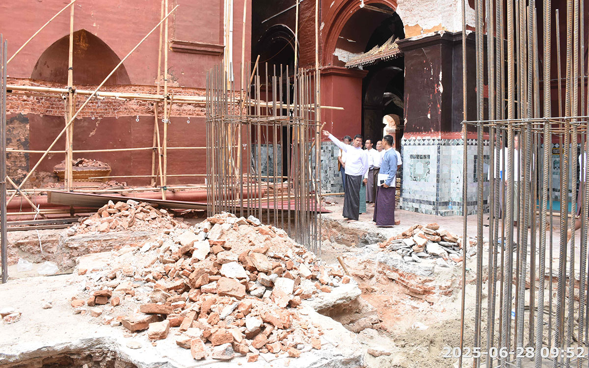 မန္တလေးငလျင်ကြီး လှုပ်ခတ်ခဲ့မှုကြောင့် ထိခိုက်ပျက်စီးဆုံးရှုံးမှုများ ဖြစ်ပေါ်ခဲ့သည့် မဟာမုနိဘုရားကြီးနှင့် ဘုရားကြီးဝန်းအတွင်းရှိ သာသနိက အဆောက်အဦများ ပြန်လည်ပြုပြင်နိုင်ရေးအတွက် လုပ်ငန်းညှိနှိုင်း အစည်းအဝေးကို ယမန်နေ့ နံနက်ပိုင်းက မဟာမုနိဘုရားကြီးရှိ အစည်းအဝေးခန်းမ၌ ကျင်းပရာ မဟာမုနိဘုရားကြီးပြန်လည်ပြုပြင်ရေး ဦးစီးကော်မတီဥက္ကဋ္ဌ၊ မန္တလေးတိုင်းဒေသကြီးအစိုးရအဖွဲ့ဝန်ကြီးချုပ် ဦးမျိုးအောင်နှင့် ဦးစီကော်မတီအဖွဲ့ဝင်များ၊ လုပ်ငန်းကော်မတီအဖွဲ့ဝင်များနှင့် တာဝန်ရှိသူများ တက်ရောက်ကြကြောင်း သိရသည်။