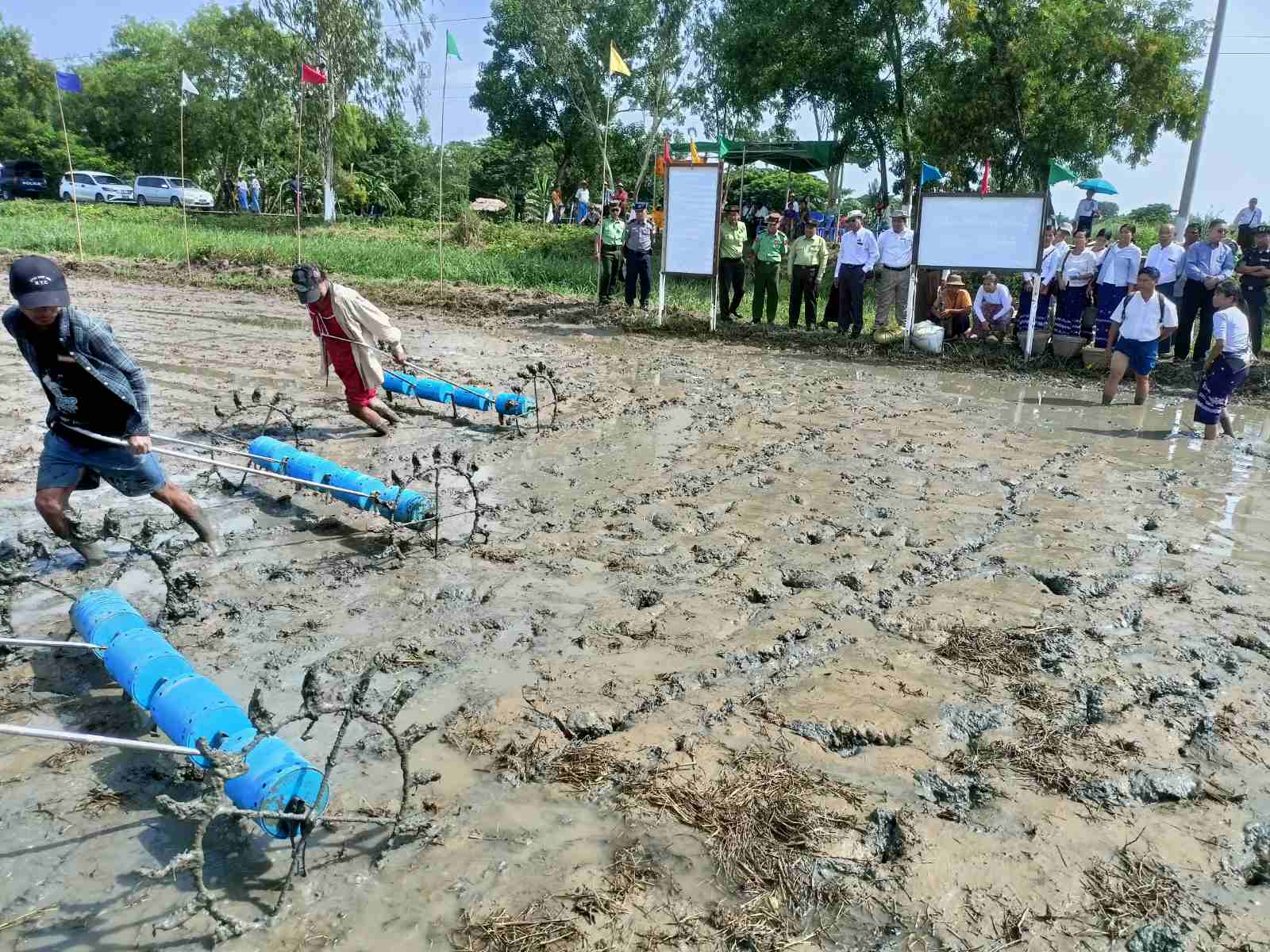 အဆိုပါ မိုးစပါး(Seeder)စနစ်ဖြင့် စိုက်ပျိုးခြင်းသရုပ်ပြပွဲသို့ အလုံခရိုင်စီမံအုပ်ချုပ်ရေးအဖွဲ့ဥက္ကဋ္ဌ ဦးထွန်းသိန်းနှင့် အဖွဲ့ဝင်များ၊ မြို့နယ်စီမံအုပ်ချုပ်ရေးအဖွဲ့ဥက္ကဋ္ဌ ဦးမျိုးညီညီနှင့် အဖွဲ့ဝင်များ ၊ခရိုင်စိုက်ပျိုးရေးဦးစီးဌာနမှ ခရိုင်ဦးစီးမှူးနှင့် ဝန်ထမ်းများ၊ မြို့နယ်စိုက်ပျိုးရေးဦးစီးဌာန၊ မြို့နယ်ဦးစီးမှူး ဦးလှဌေးနှင့် ဝန်ထမ်းများ၊ မြို့နယ်အတွင်းရှိဌာနဆိုင်ရာများ၊ ကျေးရွာအုပ်ချုပ်ရေးမှူးများနှင့် တောင်သူများ စုစုပေါင်း (၇၅) ဦးခန့် တက်ရောက်ခဲ့ကြပြီး မိုးစပါးစံပြစိုက်ခင်းတွင် စိုက်ပျိုးနေမှုအား ကြည့်ရှုအားပေးခဲ့ကြောင်း သိရသည်။
