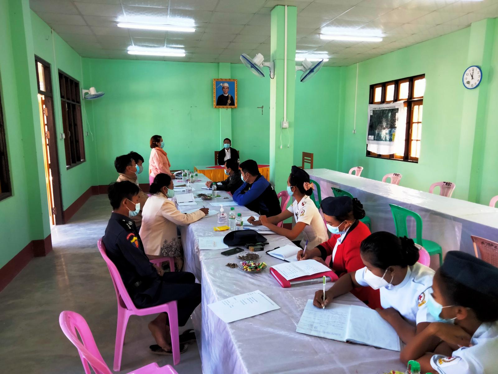 ၎င်းနောက် မြို့နယ်အုပ်ချုပ်ရေးမှူး က မြို့နယ်ကြက်ခြေနီအသင်းအတွက် အလှူငွေပေးအပ် လှူဒါန်းရာ တာဝန်ရှိသူ များက လက်ခံရယူခဲ့ကြသည်။ အဆိုပါ မြို့နယ်ကြက်ခြေနီအသင်းခွဲ အမှုဆောင်ကော်မတီတွင် ဌာနဆိုင်ရာများ၊ လူမှုရေးအဖွဲ့အစည်းများနှင့် မြို့မိ/မြို့ဖများပါဝင်သော ကော်မတီဝင်ပုဂ္ဂိုလ် (၁၅)ဦးဖြင့် ဖွဲ့စည်းထားရှိကြောင်း သိရသည်။