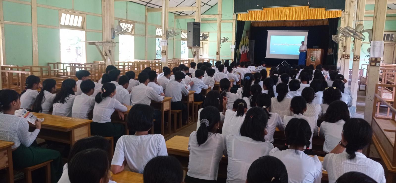 ဆက်လက်ပြီးခရိုင်လူမှုဝန်ထမ်းဦးစီးဌာနမှ လက်ထောက်ညွှန်ကြားရေးမှူး ဒေါ်ခင်အေးမော်က “ကလေးသူငယ်ဥပဒေနှင့် ကလေးသူငယ်အခွင့်အရေးဆိုင်ရာ” အကြောင်းအရာများကိုလည်းကောင်း၊ ခရိုင်ပတ်ဝန်းကျင်ထိန်းသိမ်းရေးဦးစီးဌာနမှ လက်ထောက်ညွှန်ကြားရေးမှူး ဦးဟိန်းကိုဦးက “အမှိုက်အမျိုးအစားများ ခွဲခြားစွန့်ပစ်ခြင်း ခေါင်းစဉ်ဖြင့်လည်းကောင်း၊ အသီးသီးဟောပြောခဲ့ကြပြီး အသိပညာပေးဟောပြောပွဲသို့ တက်ရောက်လာကြသည့် ကျောင်းသား/ကျောင်းသူများက အမှိုက်အမျိုးအစား ခွဲခြားစွန့်ပစ်ခြင်းနှင့် လက်တွေ့သရုပ် ပြသခြင်းကို ပြုလုပ်ဆောင်ရွက်ခဲ့ကြသည်။