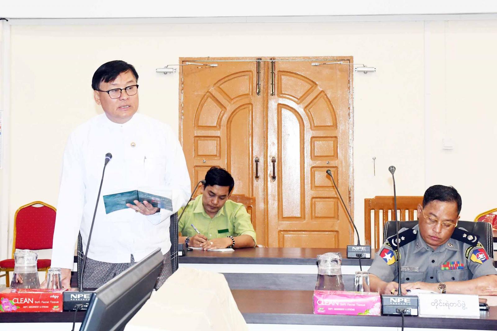 အစည်းအဝေးတွင်တိုင်းဒေသကြီး တိုးတက်ခိုင်မာအားကောင်းသည့် လူမှုအသိုက်အဝန်း ဖော်ဆောင်ရေးလုပ်ငန်းကော်မတီဥက္ကဋ္ဌ တိုင်းဒေသကြီးအစိုးရအဖွဲ့လူမှုရေးရာဝန်ကြီးဦးသက်နိုင်က သဘာဝဘေးအန္တရာယ်အမျိုးမျိုးကို ကြံ့ကြံ့ခံပြီးရင်ဆိုင်ကျော်လွှားနိုင်ရေးတွင် အစိုးရတစ်ခုတည်း၏အင်အားဖြင့် မဟုတ်ဘဲ ပိုမိုကောင်းမွန်သောပြန်လည်ထူထောင်ရေးနှင့် ပြန်လည်တည်ဆောက်ရေးအတွက် ပြည်သူ တိုင်းစုစည်းညီညွတ်စွာဖြင့် ပူးပေါင်းဆောင်ရွက်ကြရန် အရေးကြီးကြောင်း၊ သဘာဝပတ်ဝန်းကျင် ထိန်းသိမ်းရေးနှင့် ဘေးဒဏ်ကြံ့ကြံ့ခံနိုင်စွမ်းရှိသော လူမှုအသိုက်အဝန်း ဖြစ်ပေါ်လာစေရေးအတွက် အပြန်အလှန် လေးစားယုံကြည်မှု၊ ရပ်ရွာစွမ်းဆောင်ရည်ကို မြှင့်တင်ထားနိုင်မှု၊ တန်းတူညီမျှစွာ အခွင့်အရေးရရှိစေမှုတို့သည် အရေးပါသောအချက်များပင်ဖြစ်ကြောင်း၊သဘာဝဘေးအန္တရာယ်နှင့် ပတ်သက်သည့်တုံ့ပြန်ရင်ဆိုင်ရေးနှင့် ပြန်လည်ထူထောင်ရေးလုပ်ငန်းများ၏ လိုအပ်ချက်ပမာဏတွင် ကြီးမားသောကြောင့် ကဏ္ဍပေါင်းစုံ၌ အစိုးရနှင့်ဒေသအာဏာပိုင် အဖွဲ့အစည်းများသာမက ပြည်တွင်း/ ပြည်ပမှ စေတနာရှင်များ၊ ပရဟိတအဖွဲ့အစည်းများနှင့် ပြည်သူမျာ၏ စိတ်အားထက်သန်စွာ ပူးပေါင်း ဆောင်ရွက်မှုများ လိုအပ်ကြောင်း၊ ထို့ကြောင့် တိုးတက်ခိုင်မာအားကောင်းသည့် လူမှုအသိုက်အဝန်းဖော်ဆောင်ရေးလုပ်ငန်းကော်မတီကိုဖွဲ့စည်းပြီး စီမံချက်ကာလ (၆)လဖြင့် တိုးတက်ခိုင်မာအားကောင်းသည့် လူမှုအသိုက်အဝန်းဖော်ဆောင်ရေးလုပ်ငန်းသည် တစ်မျိုးသားလုံးဝိုင်းဝန်းဆောင်ရွက်ကြရန် လိုအပ်ကြောင်း၊ သဘာဝဘေးအန္တရာယ် ရင်ဆိုင်တုံ့ပြန်ကာကွယ်ရေးလုပ်ငန်းတွင်လည်း အားလုံးဝိုင်းဝန်း ပူးပေါင်းပြီး ကြိုတင်ကာကွယ်ကြရမည်ဖြစ်ကြောင်း၊ သဘာဝဘေးအန္တရာယ်များကို စနစ်တကျ ထိရောက်လျှင်မြန်စွာ ရင်ဆိုင်တုံ့ပြန်နိုင်ရေးအတွက် ဌာနဆိုင်ရာများ၊ စေတနာ့ဝန်ထမ်းလူမှုအဖွဲ့အစည်းများက စိတ်အားထက်သန်စွာဖြင့်ညီညီညွတ်ညွတ်ပူးပေါင်းဆောင်ရွက်မှသာ လုပ်ငန်းများ အောင်မြင်နိုင်မည်ဖြစ်ကြောင်း ပြောကြားခဲ့သည်။
