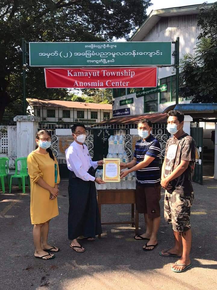 ရန်ကုန်အနောက်ပိုင်းခရိုင်၊ ကမာရွတ်မြို့နယ်တွင် ကိုဗစ်-၁၉ ရောဂါ ကာကွယ်ထိန်းချုပ်ကုသရေး လုပ်ငန်းများတွင် တစ်ဖက်တစ်လမ်းမှ အထောက်အကူဖြစ်စေရန် ရည်ရွယ်၍ လိုအပ်သည့်နေရာ များတွင် အသုံးပြုနိုင်ရန်အတွက် အမှတ် (၂) ယာဉ်ထိန်းရဲတပ်ဖွဲ့ (ရန်ကုန်)မှ အလှူငွေ(နှစ်သိန်းငါး သောင်းတိတိ) ကို အ.မ.က(၂)ကျောင်း Kamayut Township Anosmia Center အသွားအလာကန့် သတ်စောင့်ကြည့်နေရာသို့ လာရောက်လှူဒါန်းခဲ့သည်။ အလားတူ ကိုဗစ်-၁၉ ရောဂါကာကွယ် တိုက်ဖျက်ရေးအတွက် Myint & Associates Co:Ltd မှ အလှူငွေ (ကျပ်တစ်ဆယ်သိန်းတိတိ)နှင့် ရေသန့်(၂၀၀)ကတ်၊ စေတနာရှင် ၇ ရက်သားသမီးများမှလည်း ရေသန့်(၄၀၀)ကတ်တို့ကို ယနေ့ နံနက်ပိုင်းက လာရောက်လှူဒါန်းခဲ့ကြသည်။