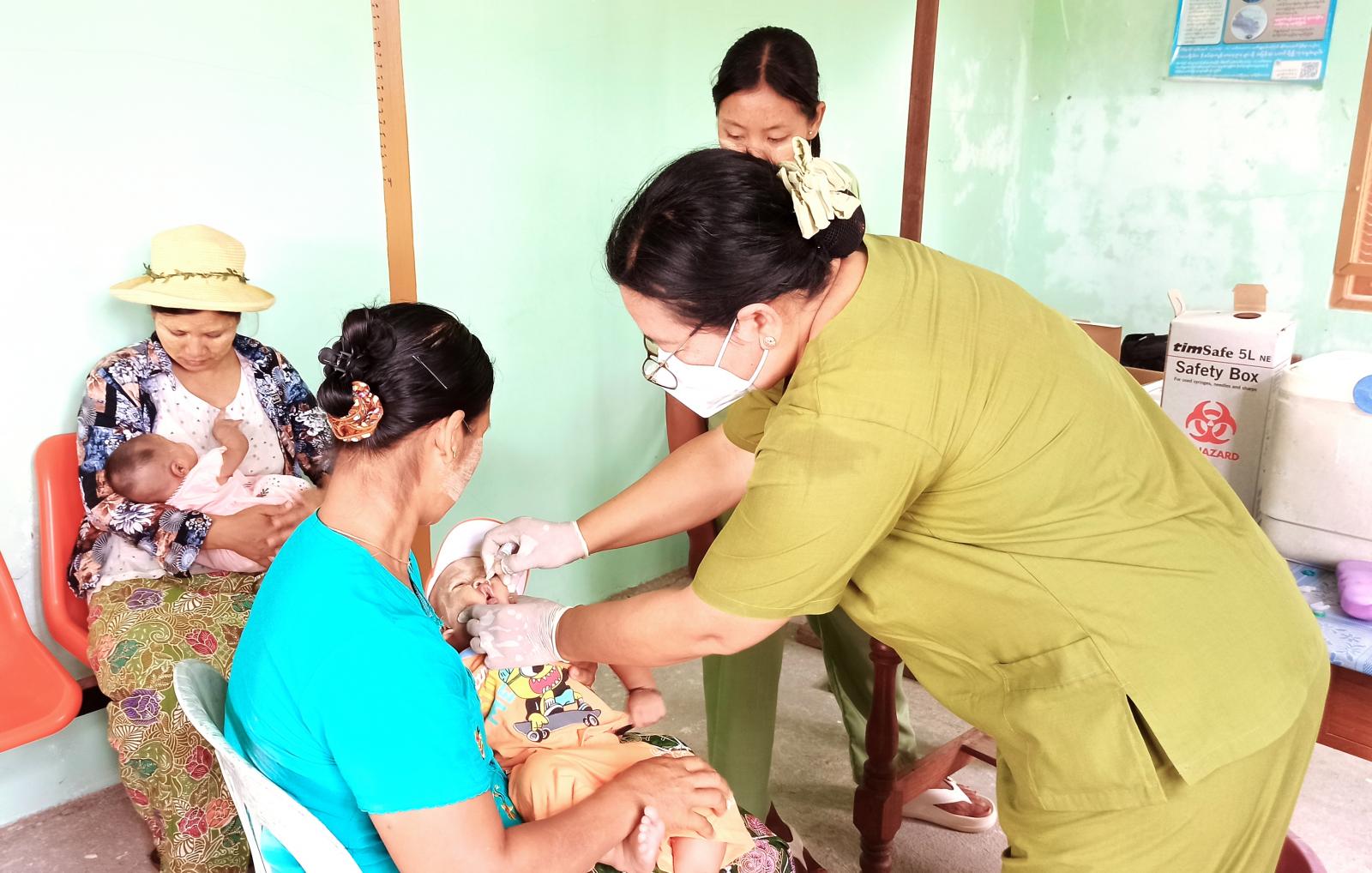 ထိုသို့ ဆောင်ရွက်ရာတွင် မြို့နယ်ပြည်သူ့ကျန်းမာရေးဌာန၊ တာဝန်ရှိသူများက ကိုယ်ဝန်ဆောင်မိခင်များအား ဆုံဆို့၊ မေးခိုင်ရောဂါကာကွယ်ဆေးနှင့် မွေးစမှ အသက်နှစ်အောက်ကလေးများအား အသက်အပိုင်းအခြားအလိုက် ပုံမှန်ကာကွယ်ဆေးများ ထိုးနှံတိုက်ကျွေးပေးကြကြောင်း သိရသည်။