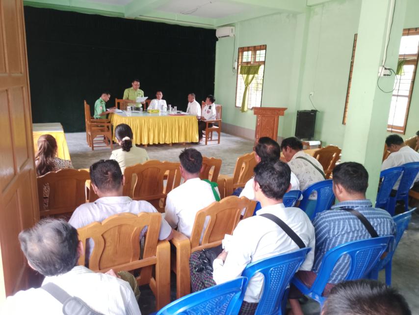 အစည်းအဝေးတွင် မြို့နယ်စီမံအုပ်ချုပ်ရေးအဖွဲ့ဥက္ကဋ္ဌ ဦးမျိုးမင်းကပြောကြားရာတွင် ကျောင်းဖွင့်ရာသီ၌ သတ်မှတ်ထားရှိသည့်ရက်တွင် ကျောင်းနေအရွယ်ကလေးများ ကျောင်းအပ်နှံရေးကိစ္စရပ်များ၊ ဘဘာဝဘေးအန္တရာယ်စီမံခန့်ခွဲမှုဆိုင်ရာကိစ္စရပ်များနှင့် ပတ်သက်၍ ကြိုတင်စီမံဆောင်ရွက်ထားရှိရန် ပြည်သူ့စစ်မှုထမ်းဆောင်နိုင်ရေးဆင့်ခေါ်ရာတွင် အဂတိကင်းရှင်းစွာဆောင်ရွက်ကြရန်၊ ရွေးကောက်ပွဲကျင်းပနိုင်ရေးနှင့် လူဦးရေစာရင်းတိကျမှန်ကန်ရေး သက်ဆိုင်ရာဌာနများနှင့် ပေါင်းစပ်ဆောင်ရွက်ရန်၊ လုံခြုံရေးဆိုင်ရာကိစ္စရပ်များနှင့် အခြားထူးခြားဖြစ်စဥ်များရှိပါက အချိန်နှင့်တစ်ပြေးညီ ပြန်လည်တင်ပြရန် ဆွေးနွေးပြောကြားခဲ့ပါကြောင်းနှင့် ပြည်ထောင်စုအစိုးရအဖွဲ့၏ ညွှန်ကြားချက်များအား ဆွေးနွေးခဲ့ကြောင်းသိရသည်။