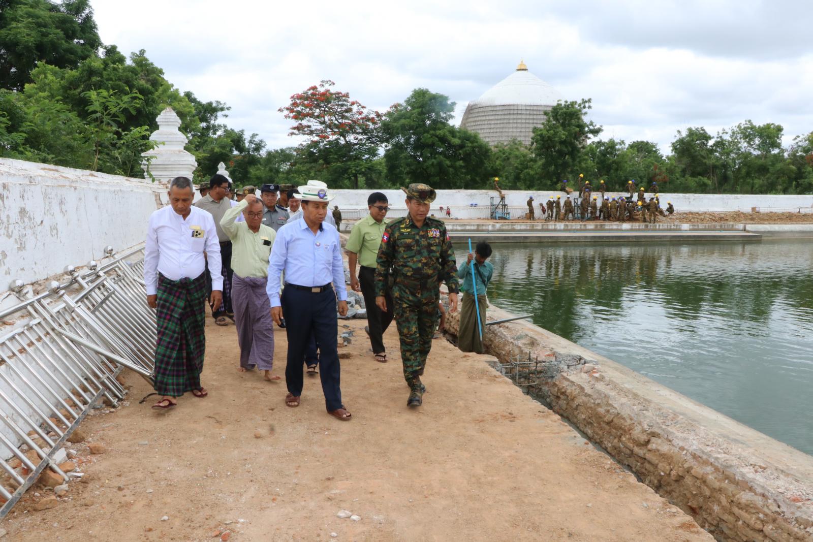 ထို့နောက် တိုင်းဒေသကြီး ဝန်ကြီးချုပ်၊ ဒုတိယဗိုလ်ချုပ်ကြီးနှင့် တာဝန်ရှိသူများသည် ငလျင်လှုပ်ခတ်မှုကြောင့် ထိခိုက်ပျက်စီးခဲ့သည့် စစ်ကိုင်းမြို့၊ စစ်ကိုင်းတောင်ရိုး ဆွမ်းဦးပုညရှင်စေတီတော်မြတ်ကြီးနှင့် သာသနာ့ဗိမာန်တော်ကြီး ပြန်လည်ပြုပြင်နေမှုများအား လိုက်လံကြည့်ရှုခဲ့ကြောင်း သိရသည်။