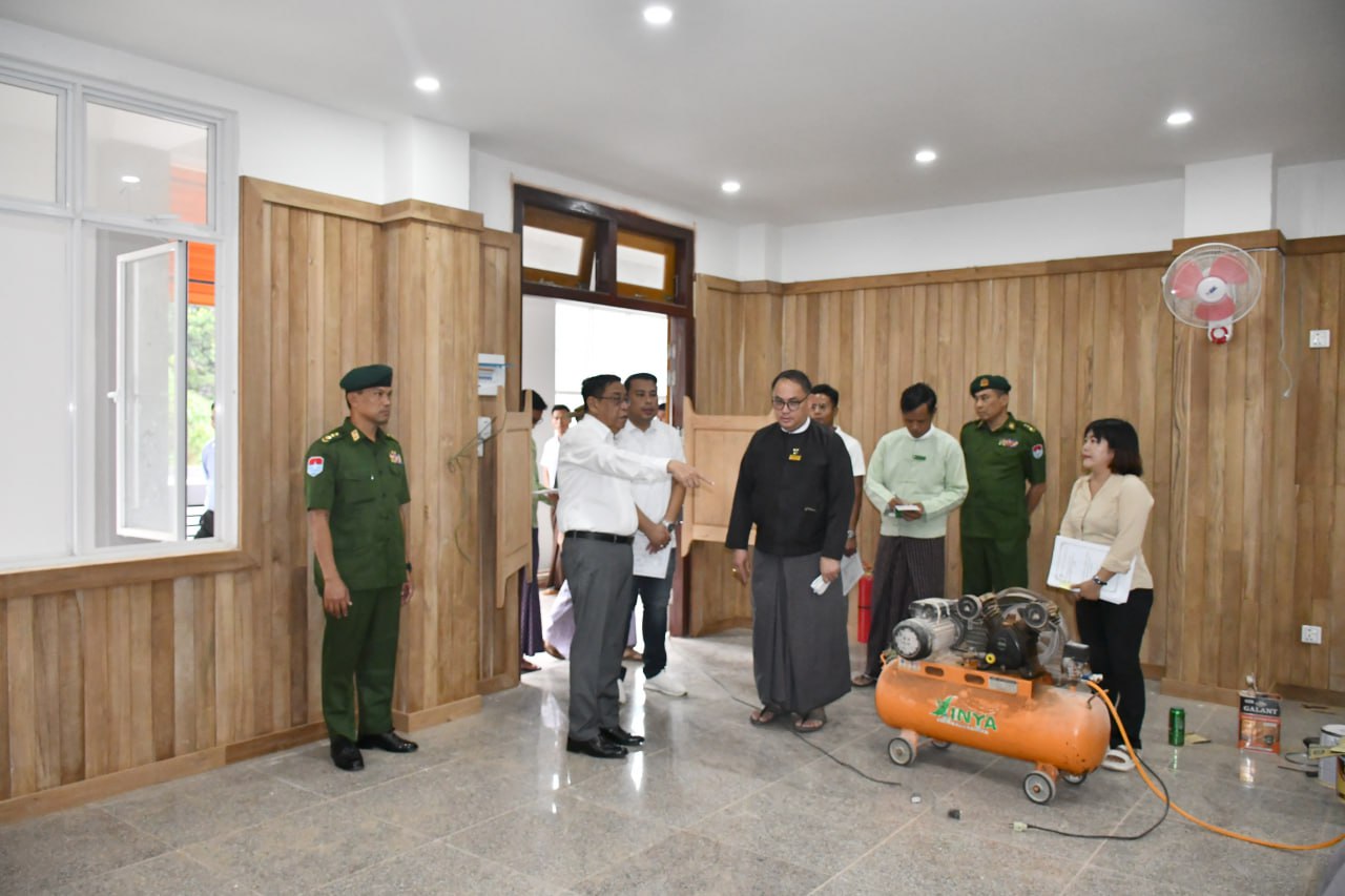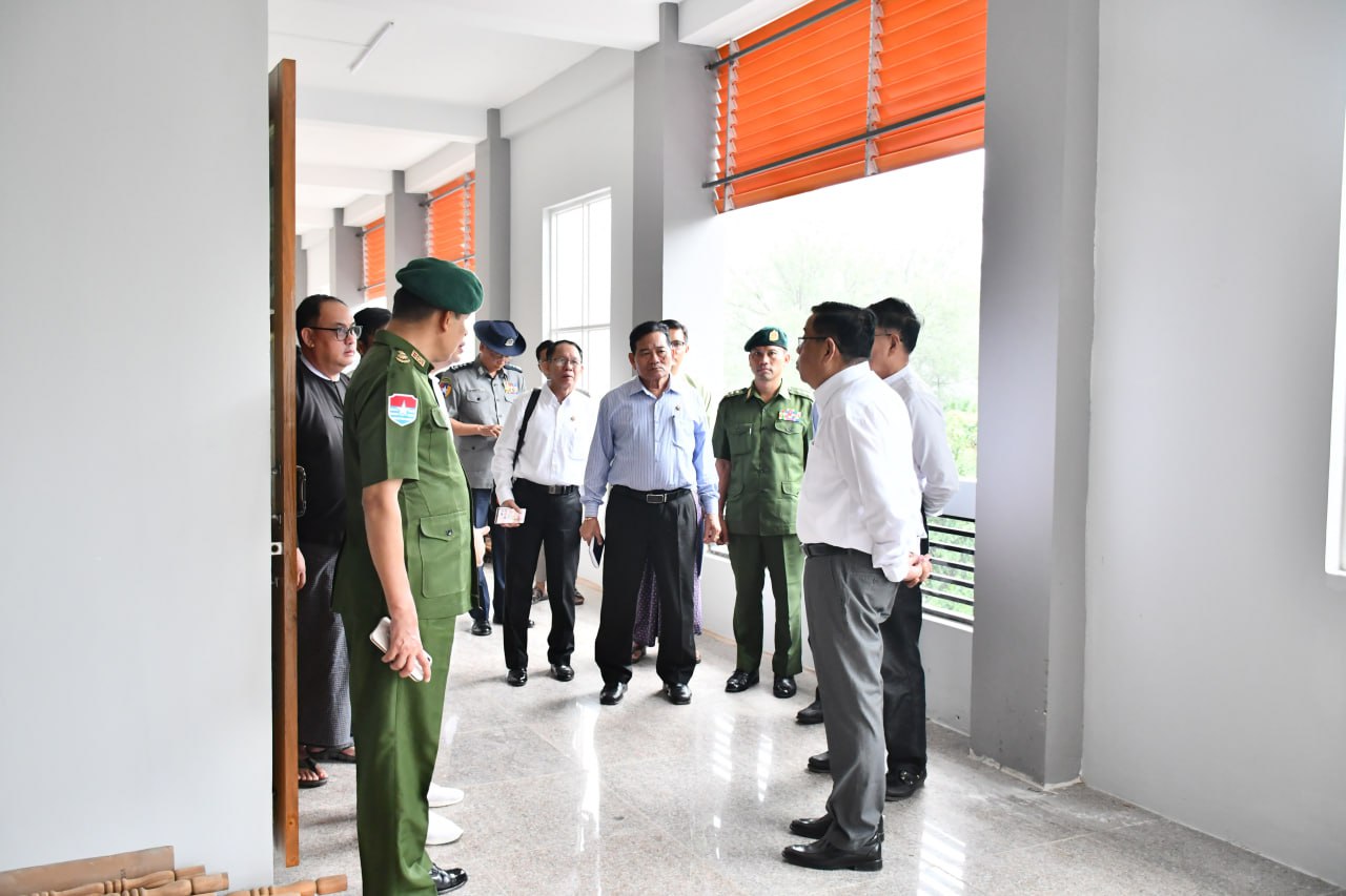 ရှေးဦးစွာ တိုင်းဒေသကြီးအစိုးရအဖွဲ့ဝန်ကြီးချုပ်နှင့်တာဝန်ရှိသူများသည် ကော့သောင်းခရိုင်နှင့် မြို့နယ်တရားရုံးသစ် ဆောက်လုပ်နေသည့်အဆောက်အဦနေရာသို့ သွားရောက်ခဲ့ပြီး အဆောက်အဦအချောသပ်ဆောက်ရွက်ပြီးစီးမှုအခြေအနေများ၊ အဆောက်အဦီအတွင်း အခန်းဖွဲ့စည်းဆောင်ရွက်ထားရှိမှုများနှင့် လုပ်ငန်းခွင်အတွင်း လှည့်လည်ကြည့်ရှု၍ လိုအပ်သည်များ မှာကြားသည်။ ယင်းနောက်ခရိုင်နှင့် မြို့နယ်ဥပဒေရုံးသစ် ဆောက်လုပ်မည့် လုပ်ငန်းအခြေအနေများအား ကြည့်ရှု၍ တာဝန်ရှိသူများအား လိုအပ်သည်များ လမ်းညွှန်မှာကြားခဲ့ကြောင်း သိရသည်။