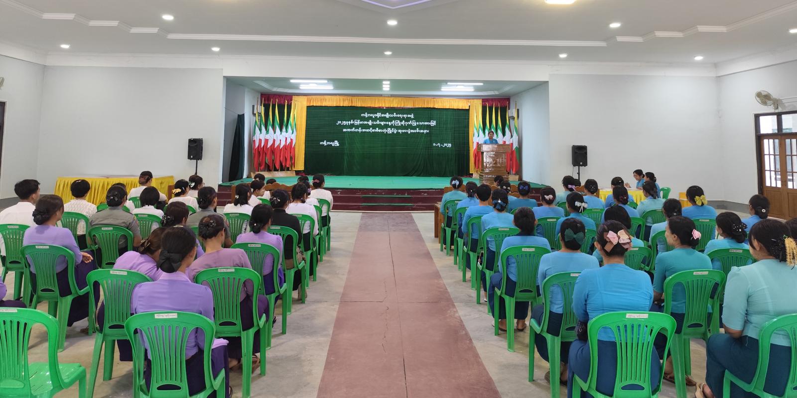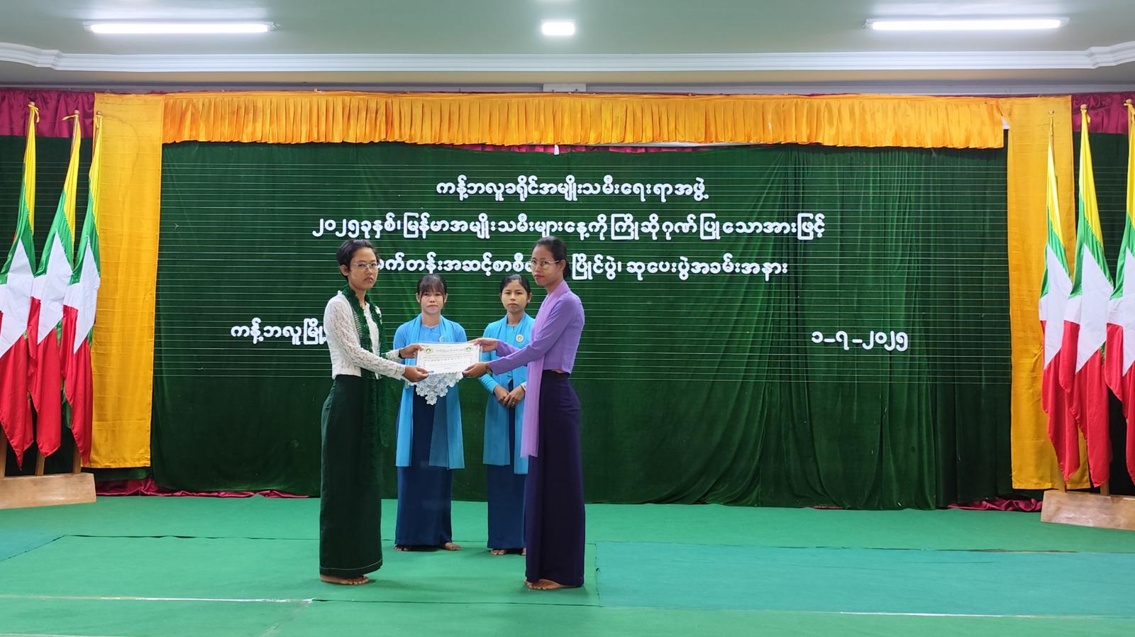 ၂၀၂၅ ခုနှစ် ဇူလိုင် ၃ ရက်နေ့တွင်ကျရောက်မည့် မြန်မာအမျိုးသမီးများနေ့အထိမ်းအမှတ် အထက်တန်းဆင့် စာစီစာကုံးပြိုင်ပွဲ ဆုချီးမြှင့်ပွဲအခမ်းအနားကို ယနေ့နံနက် ၁၀ နာရီက ကန့်ဘလူခရိုင် စုပေါင်းရုံး ရွှေဆည်မြိုင်ခန်းမ၌ ကျင်းပသည်။