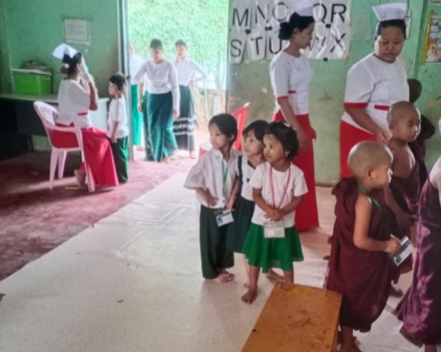 ထို့နောက် ကျန်းမာရေးဝန်ထမ်းများက ကျောင်းသား၊ ကျောင်းသူများအား သံချဆေးတိုက်ကျွေးခြင်းနှင့်ကျန်းမာရေးစစ်ဆေးခြင်းများ ဆောင်ရွက်ပေးခဲ့ကြောင်းးသိရသည်။