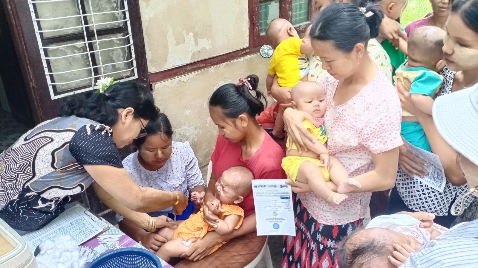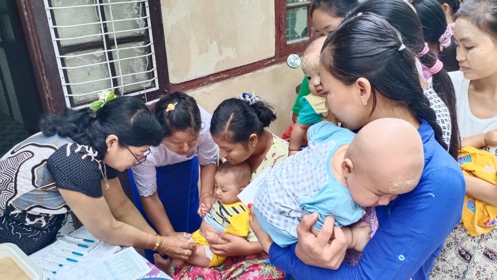ထိုသို့ဆောင်ရွက်ရာတွင် ကျန်းမာရေးဝန်ထမ်းများက မြို့ပေါ်ရပ်ကွက်ငါးခုမှ ကလေးငယ်များအား အသက်အရွယ်အပိုင်းအခြားအလိုက် ပုံမှန်ကာကွယ်ဆေးများဖြစ်သည့် ဆုံဆို့၊ ကြက်ညှာ၊ မေးခိုင်၊ ဦးနှောက်အမြှေးရောင် ငါးမျိုးစပ်ကာကွယ်ဆေး၊ အသည်းရောင်အသားဝါ(ဘီ)ပိုး ကာကွယ်ဆေး၊ ပိုလီယိုအကြောသေ၊ ဝက်သက်၊ ဂျိုက်သိုး၊ ဝမ်းပျက်ဝမ်းလျော(ရိုတ)ကာကွယ်ဆေး တိုက်ကျွေးခြင်းနှင့် ကိုယ်ဝန်ဆောင်မိခင်များအား မေးခိုင်၊ ဆုံဆို့ကာကွယ်ဆေးများ ထိုးနှံပေးခြင်းတို့ကို ဆောင်ရွက်ပေးခဲ့ကြောင်း သိရသည်။