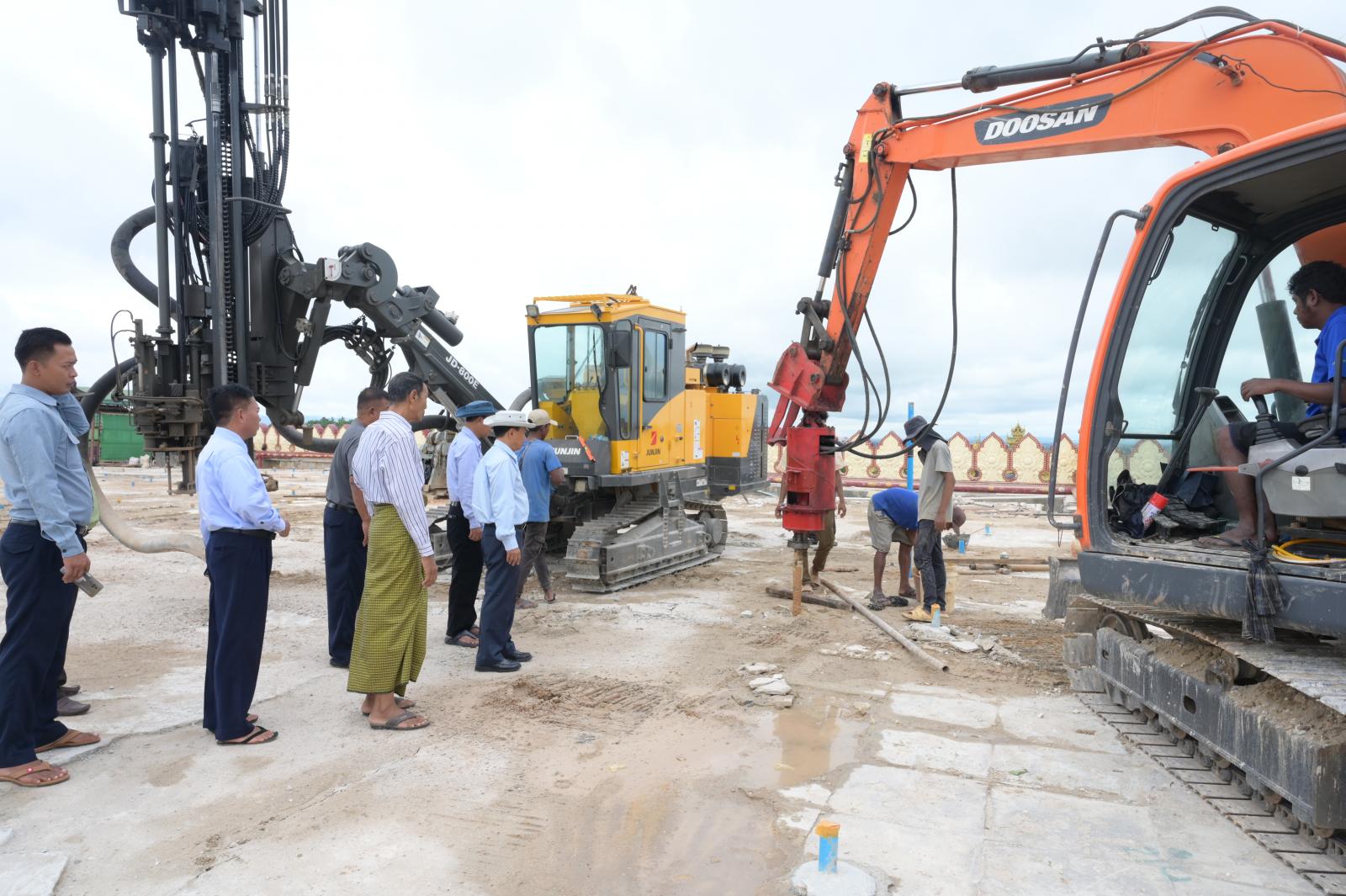ယင်းနောက် နေပြည်တော်ကောင်စီဥက္ကဋ္ဌ ဦးသန်းထွန်းဦးသည် ဥပ္ပါတသန္တိစေတီတော်ကြီးသို့ သွားရောက်ပြီး ငလျင်ဘေးကြောင့် ထိခိုက်ပျက်စီးခဲ့သည့် ရင်ပြင်တော်၊ ပစ္စယာနှင့် ပရိဝုဏ်များကို ပြန်လည်ပြုပြင်မွမ်းမံနေမှုအခြေအနေများနှင့် ဖယ်ရှားရှင်းလင်းနေမှုအခြေအနေများ Cement grouting နှင့် Soil stabilization ဆောင်ရွက်နေမှုများ၊ မူလရင်ပြင်တော်ကြမ်းခင်းအား တူးထုတ်ပြင်ဆင်နေမှုအခြေအနေများကို ကြည့်ရှုစစ်ဆေးရာ တာဝန်ရှိသူများမှတင်ပြချက်များအပေါ် နေပြည်တော်ကောင်စီဥက္ကဋ္ဌက လုပ်ငန်းများအမြန်ပြီးစီးအောင်ဆောင်ရွက်ရေး၊ သတ်မှတ်စံချိန်စံညွှန်းများနှင့်အညီ ရေရှည်ခိုင်ခံ့မှုရှိအောင်ဆောင်ရွက်ရေး၊ နည်းပညာပိုင်းဆိုင်ရာ ပြုပြင်မွမ်းမံရေးလုပ်ငန်းများ စနစ်တကျစီမံဆောင်ရွက်နိုင်ရေးတို့ကိုမှာကြားခဲ့ပြီး လုပ်ငန်းဆောင်ရွက်နေသော တပ်မတော်သားများအား စားသောက်ဖွယ်ရာများ ပေးအပ်ခဲ့သည်။