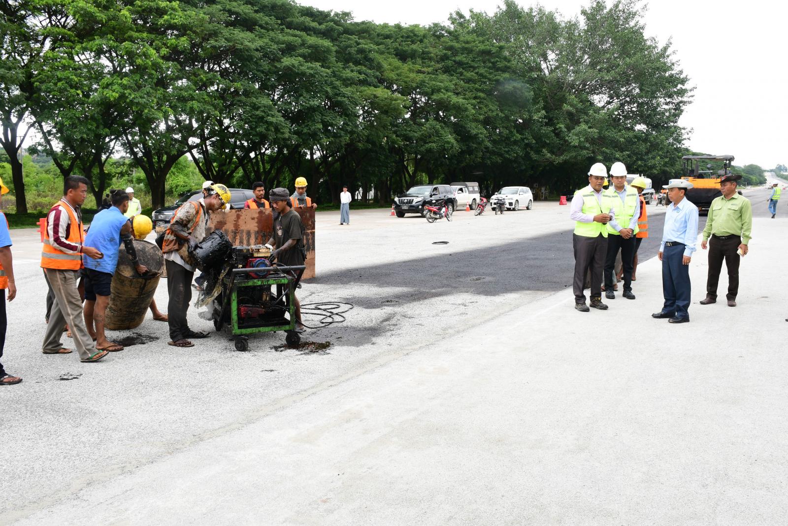 ဆက်လက်၍ နေပြည်တော်ကောင်စီဥက္ကဋ္ဌ ဦးသန်းထွန်းဦးသည် ရာဇဌာနီလမ်းမကြီးသို့သွားရောက်ပြီး ငလျင်ဘေးကြောင့် ထိခိုက်ပျက်စီးခဲ့သော လမ်းပိုင်းများ ပြန်လည်ပြုပြင်နေမှုအခြေအနေများကိုကြည့်ရှုစစ်ဆေးပြီး လုင်ငန်းများအပိုင်းလိုက်အမြန်ပြီးစီးအောင်ဆောင်ရွက်ရေး၊ လုပ်ငန်းသုံးကျောက်များအား သတ်မှတ်အရွယ်အစားအတိုင်းအသုံးပြုရေး၊ ရေရှည်ခိုင်ခံ့မှုရှိအောင် စံချိန်၊ စံညွှန်းနှင့် အညီဆောင်ရွက်ရေးတို့ကိုမှာကြားခဲ့သည်။